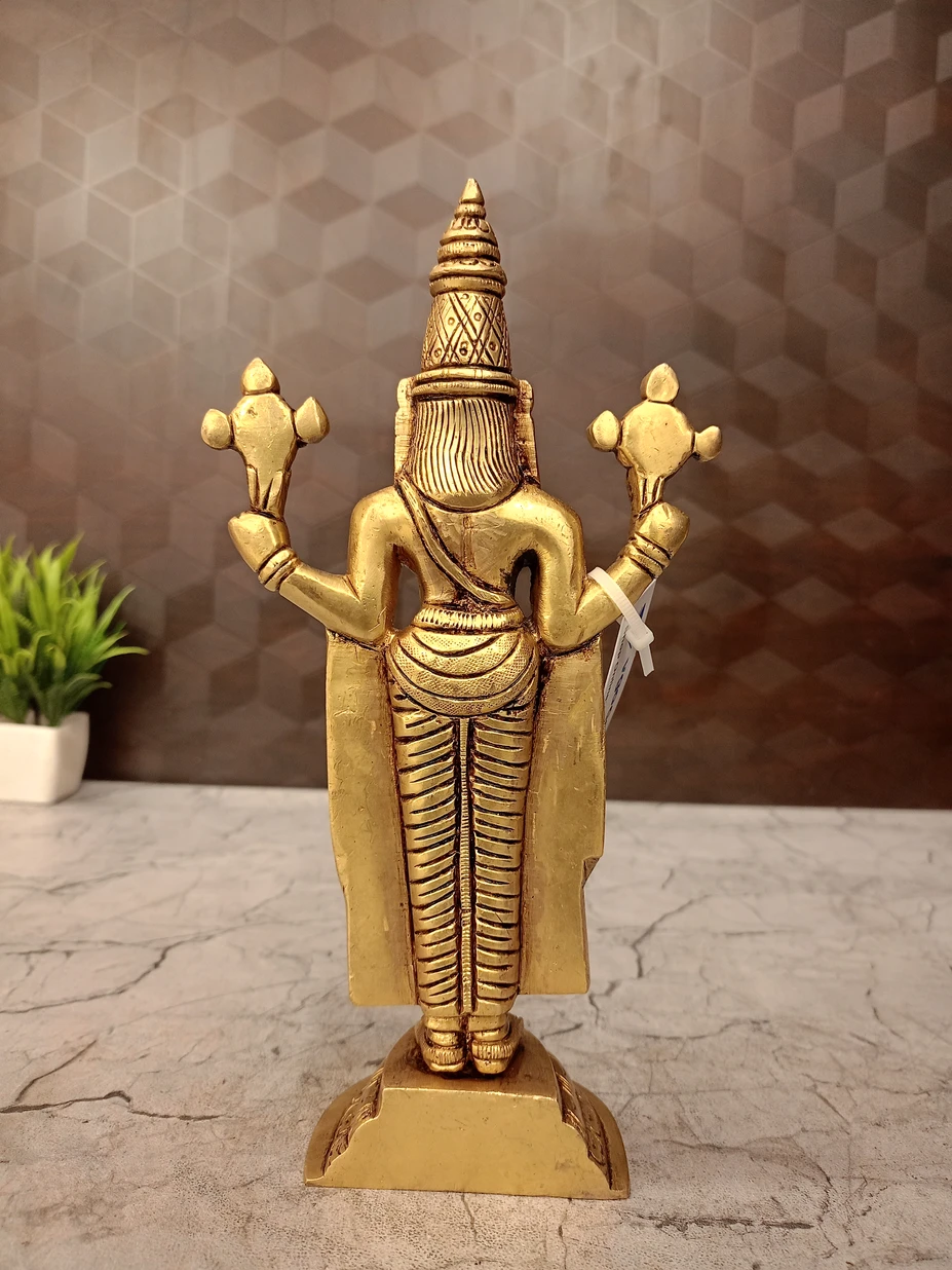Made from premium-quality solid brass, this Balaji murti reflects exceptional craftsmanship with intricate detailing that captures the divine aura of Tirupati. The rich brass finish adds timeless elegance while ensuring durability and spiritual significance for daily worship.