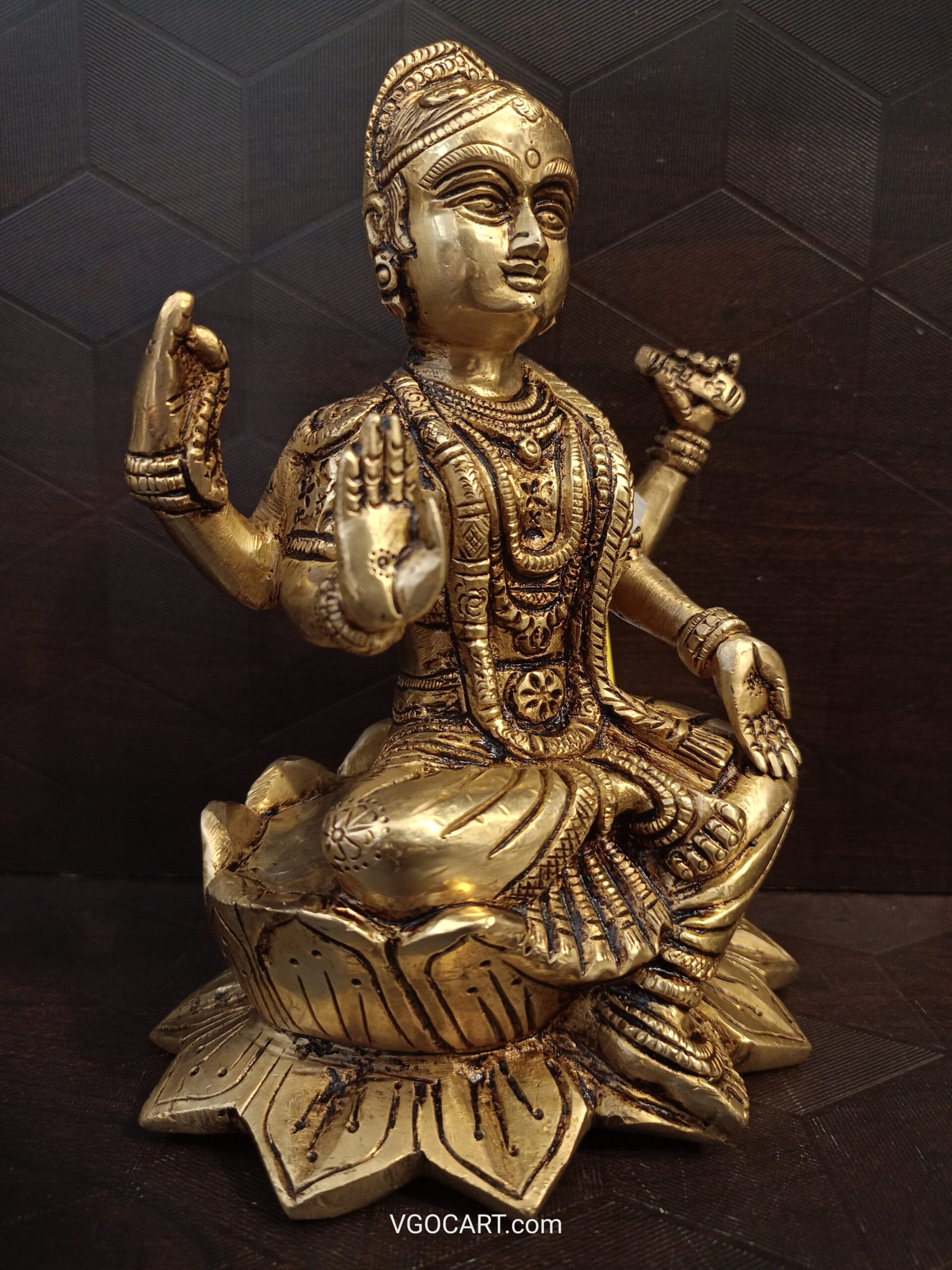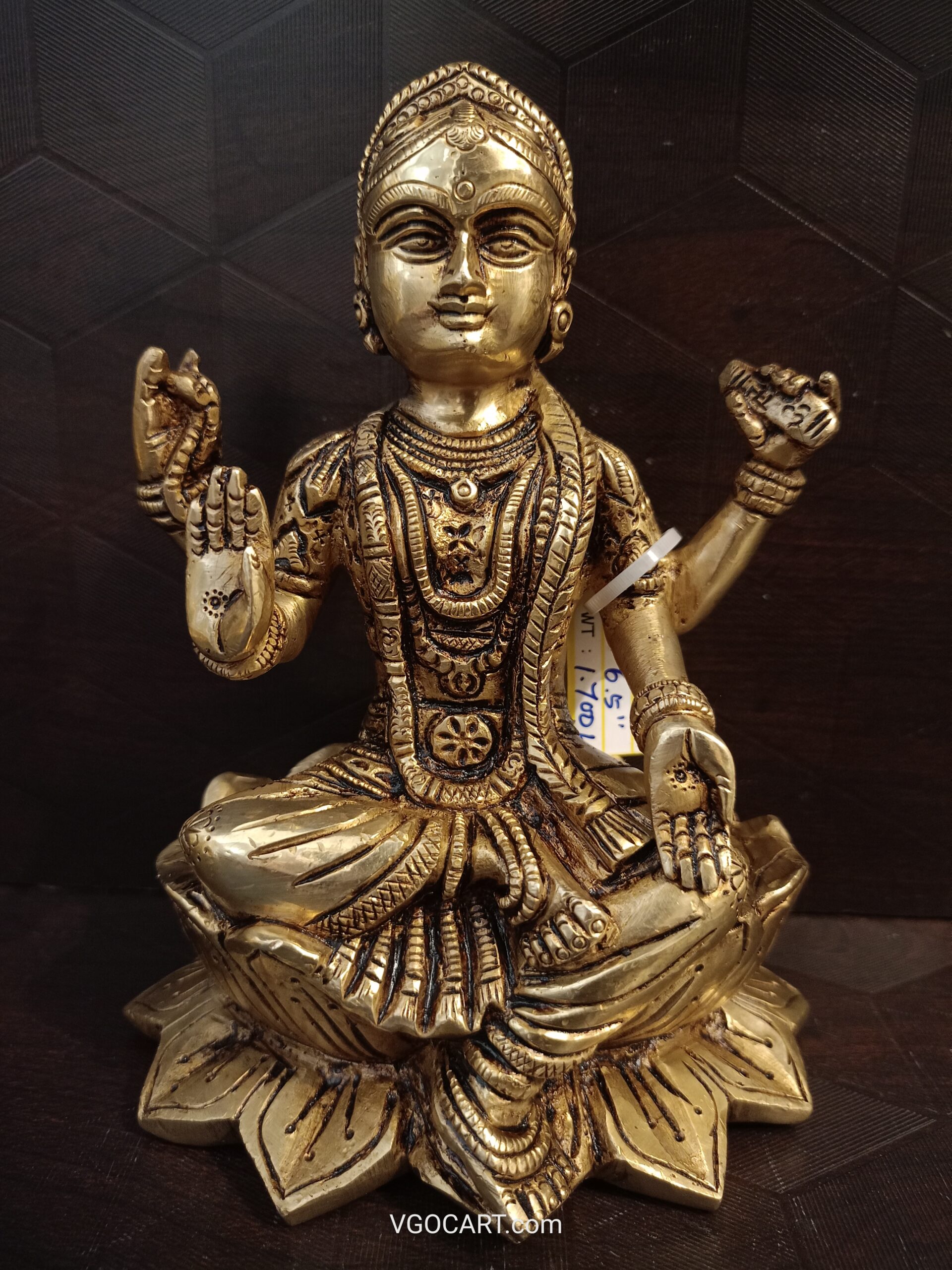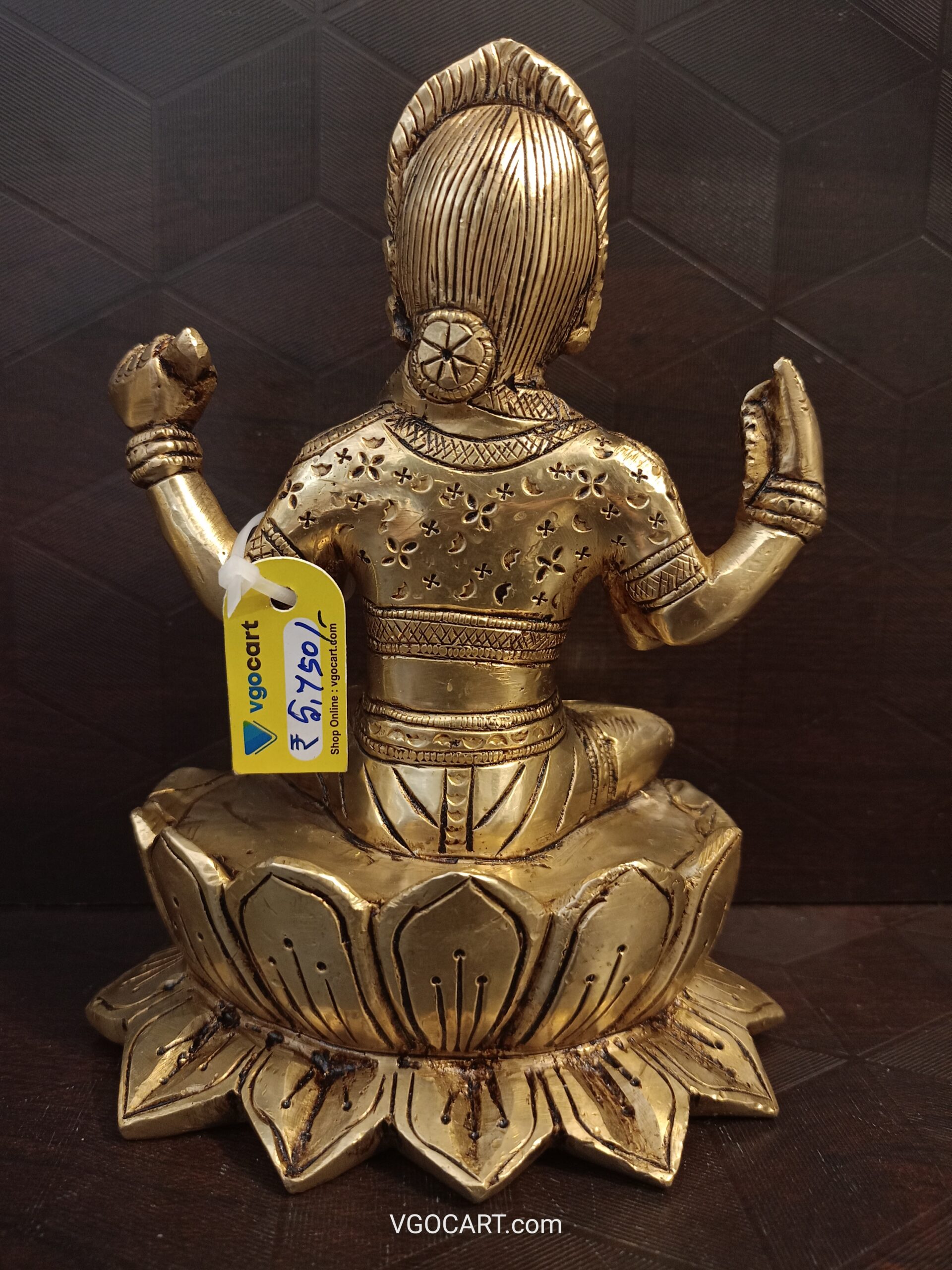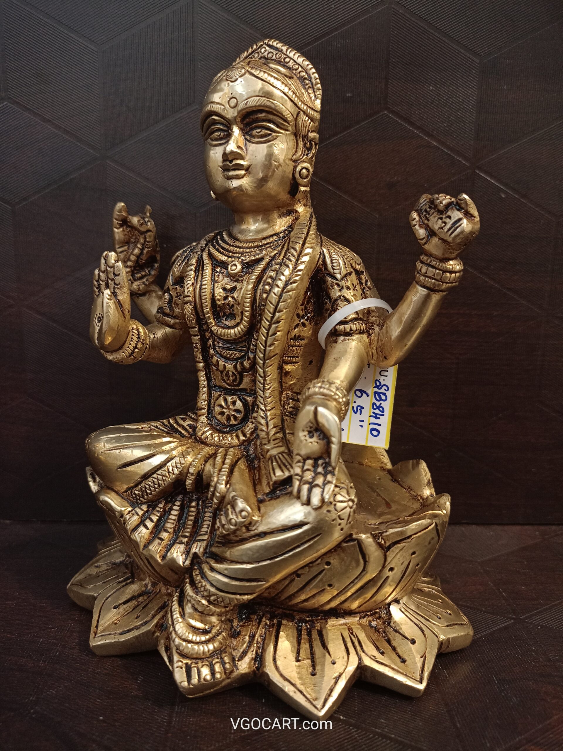 Brass Big Balambika Idol sitting on a lotus base design, we can keep this brass 6-inch Goddess Lalithambigai Idol.