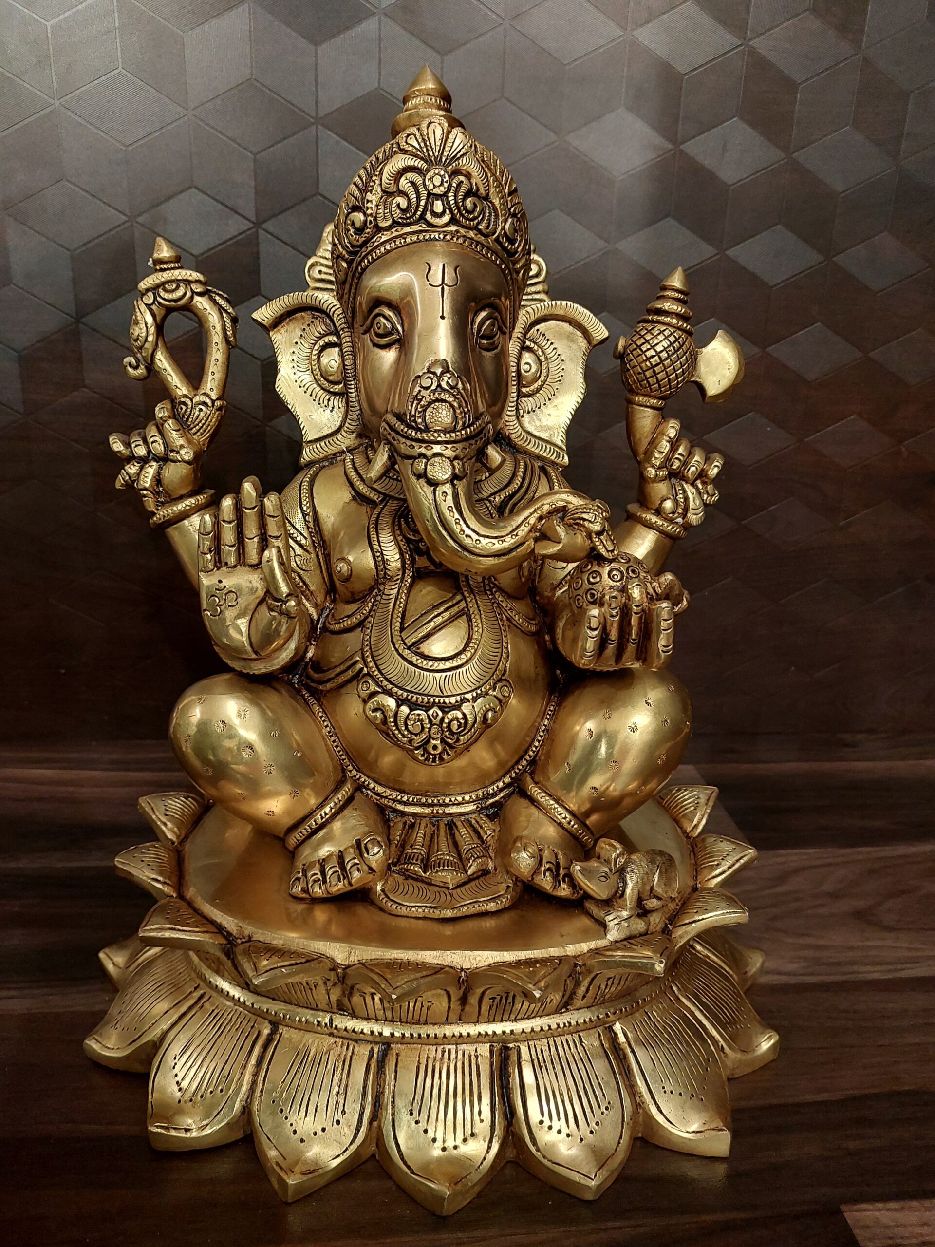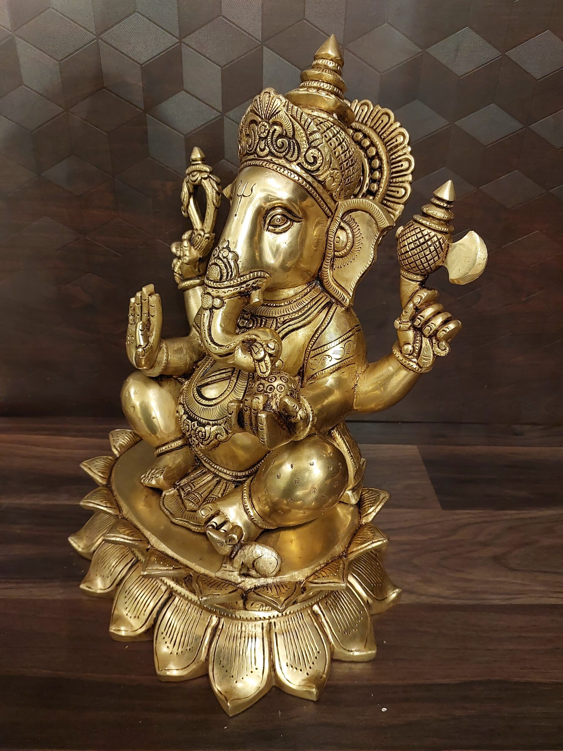 Brass Big Ganapathy Idol on Lotus Base Designer look- 14″