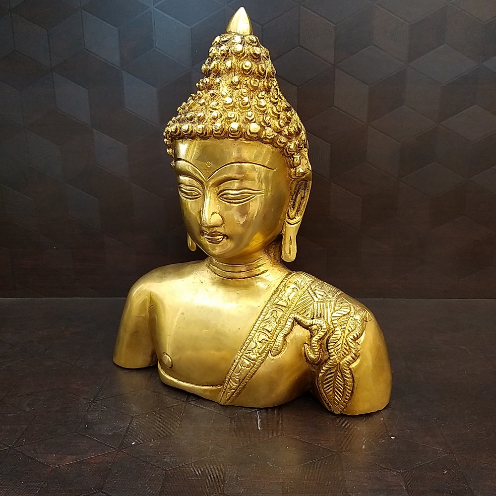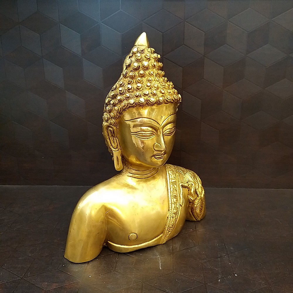 Brass Buddha Head with a large Base Idol is designed with superfine finishing and black antique carvings. This idol is specially carved for your place.