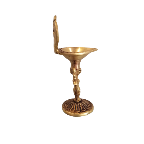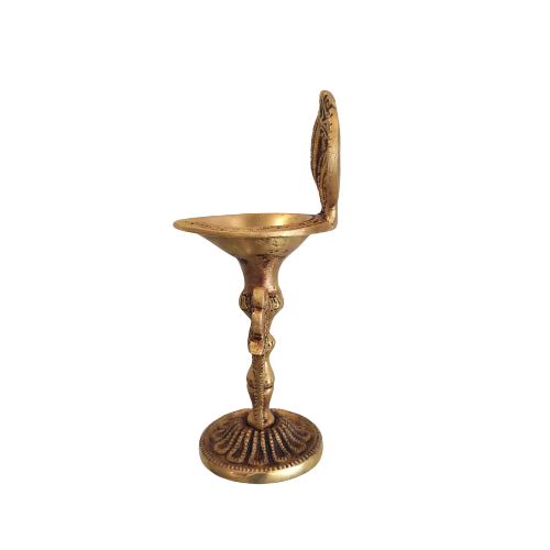 Brass Designer Diya is made of pure shining quality brass metal by a great artisan of Vgocart. It has a peacock on both sides of the Diya and it also has an antique look and designer work throughout the diya, it has a mount designer decorative plate behind diya. It will keep diya from blowing away from the air.