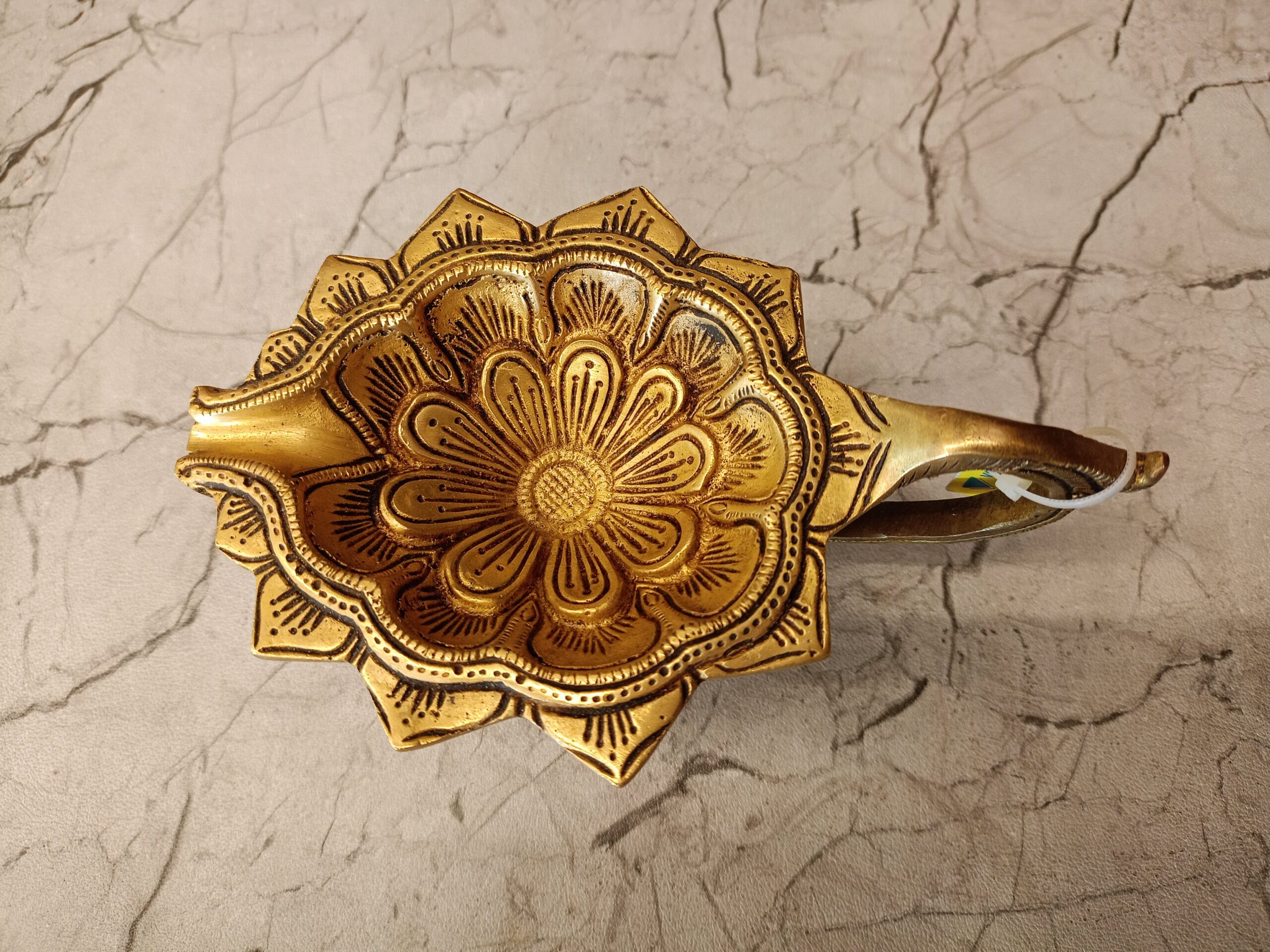 The Brass Designer diya is very unique and handicraft idol. it is used to pooja rooms and offices.