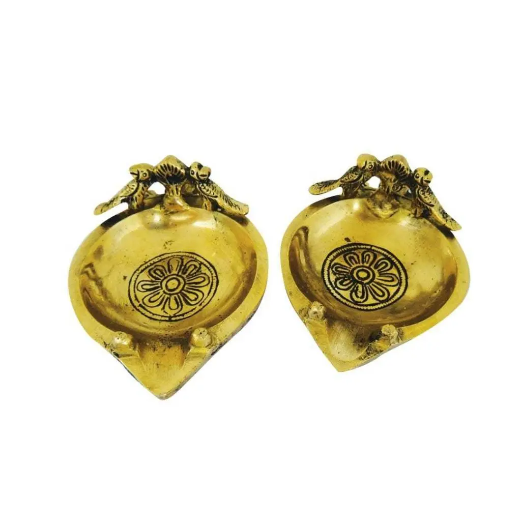 This Brass Diya Set is designed with simple and elegant carvings which act as a source of light and decoration. This brass Diya is depicted with a traditional floral and circle design at the center point along with a pair of parrot carvings as an arch to add an extra traditional touch to the Diya.