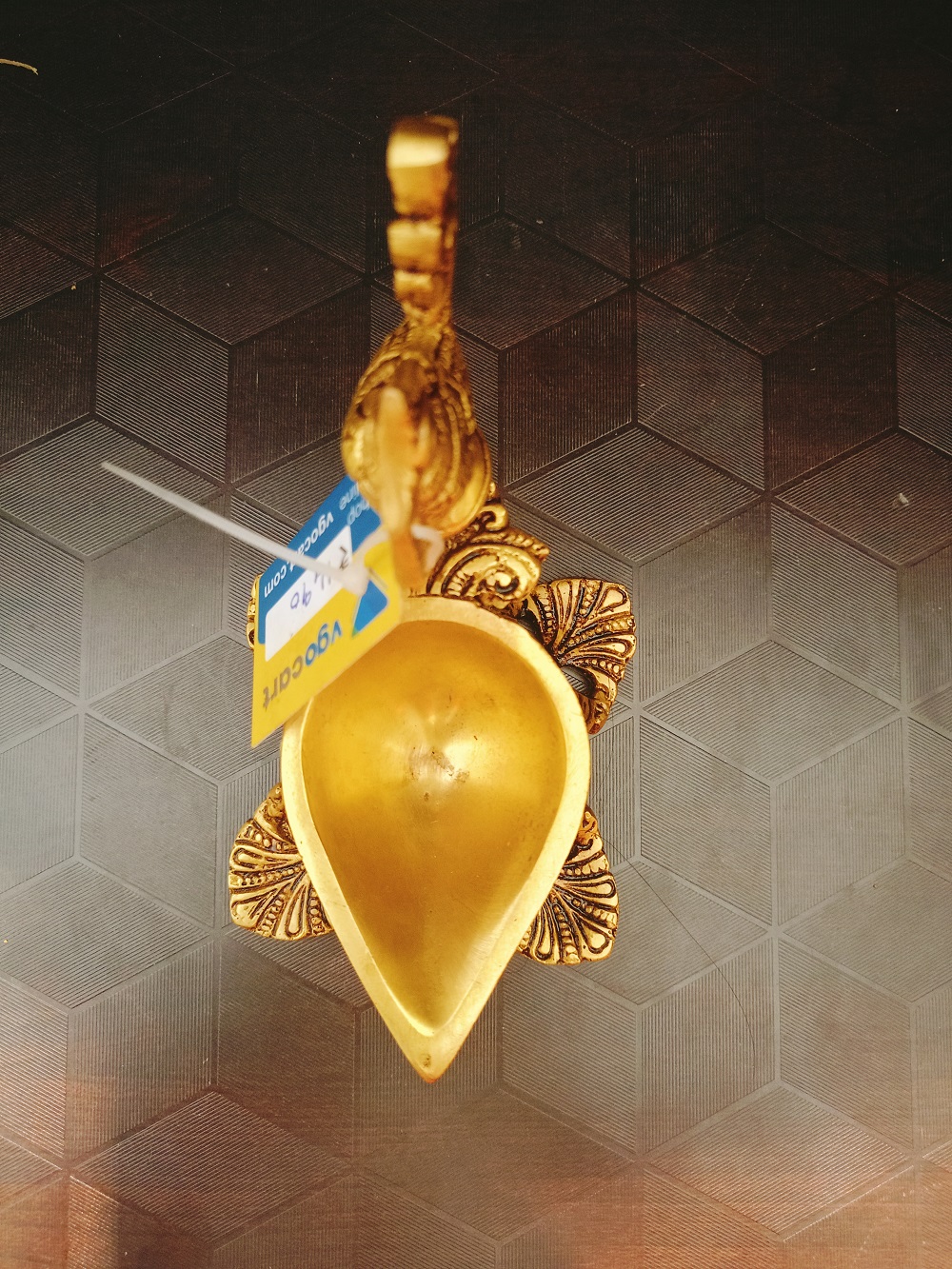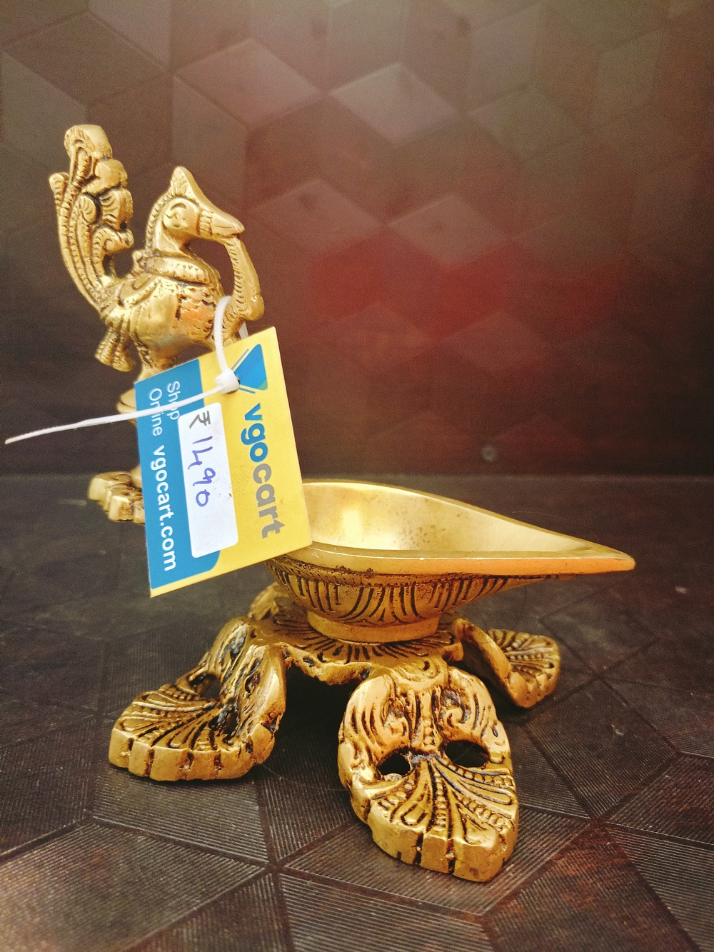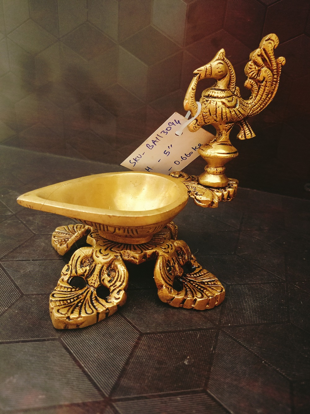 Brass Diya With Base And Peacock On Top | Pure Brass Vilaku With Peacock 5”