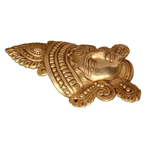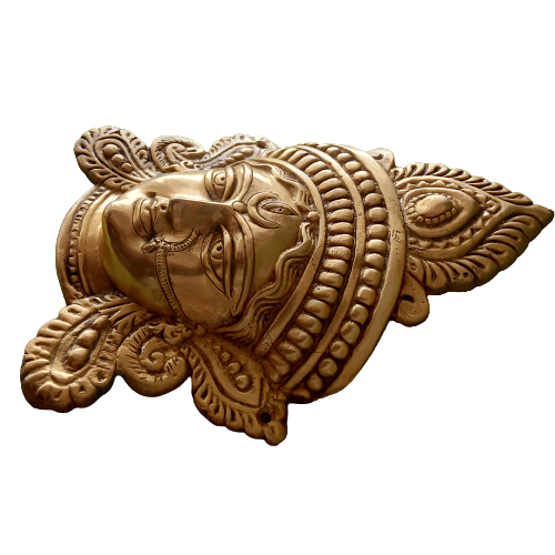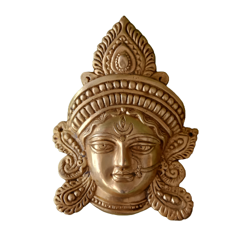This Brass Durga Face is considered one of the incarnations of Maa Parvati (Shakthi). Goddess Durga is a warrior goddess who was created to destroy all the infinite evils. She has got 18 hands with weapons for war and rides a royal lion. Goddess Durga Devi determines the power of good over evil or demonic forces.
