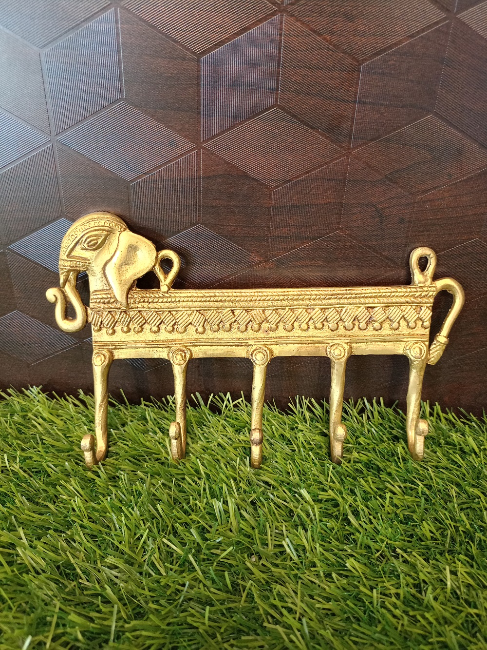 Brass Elephant Face Key Holder Large 5”
