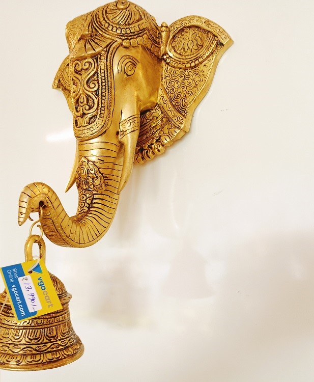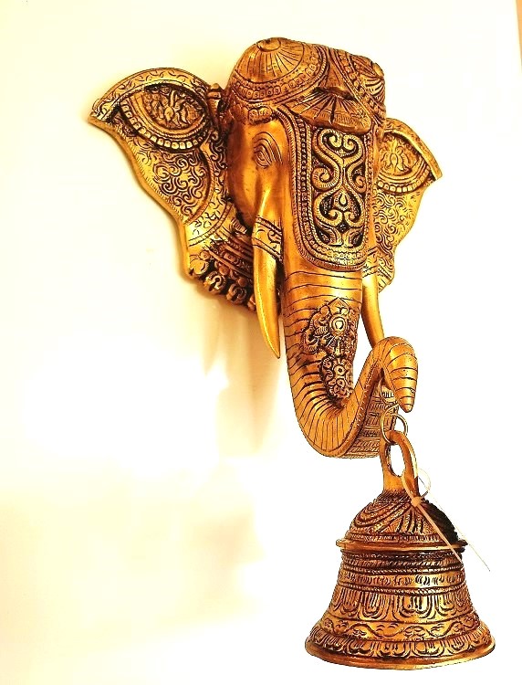 Brass Elephant Face Wall Mount Big | Elephant Face Pure Brass Wall Hanging Large 16”