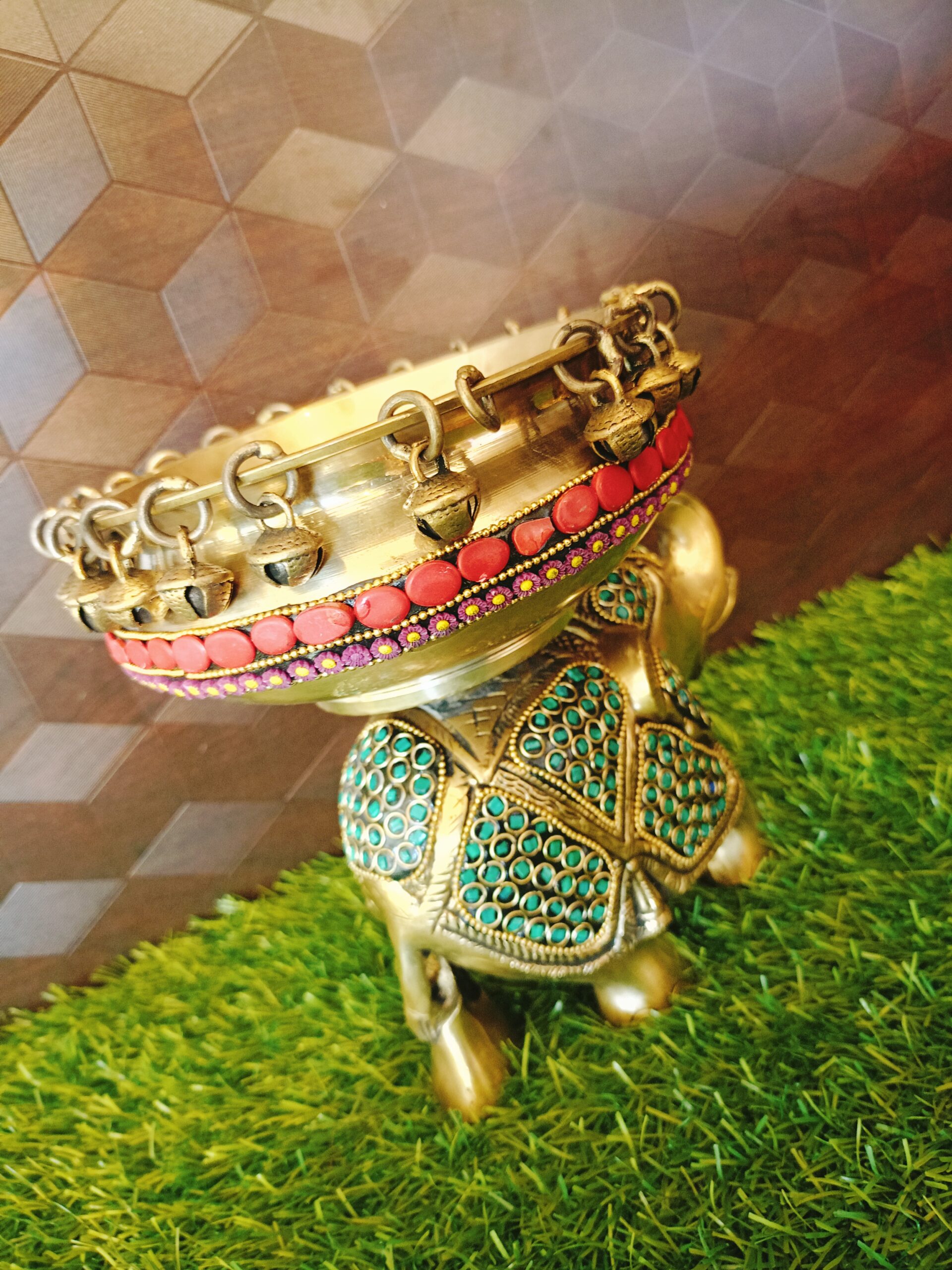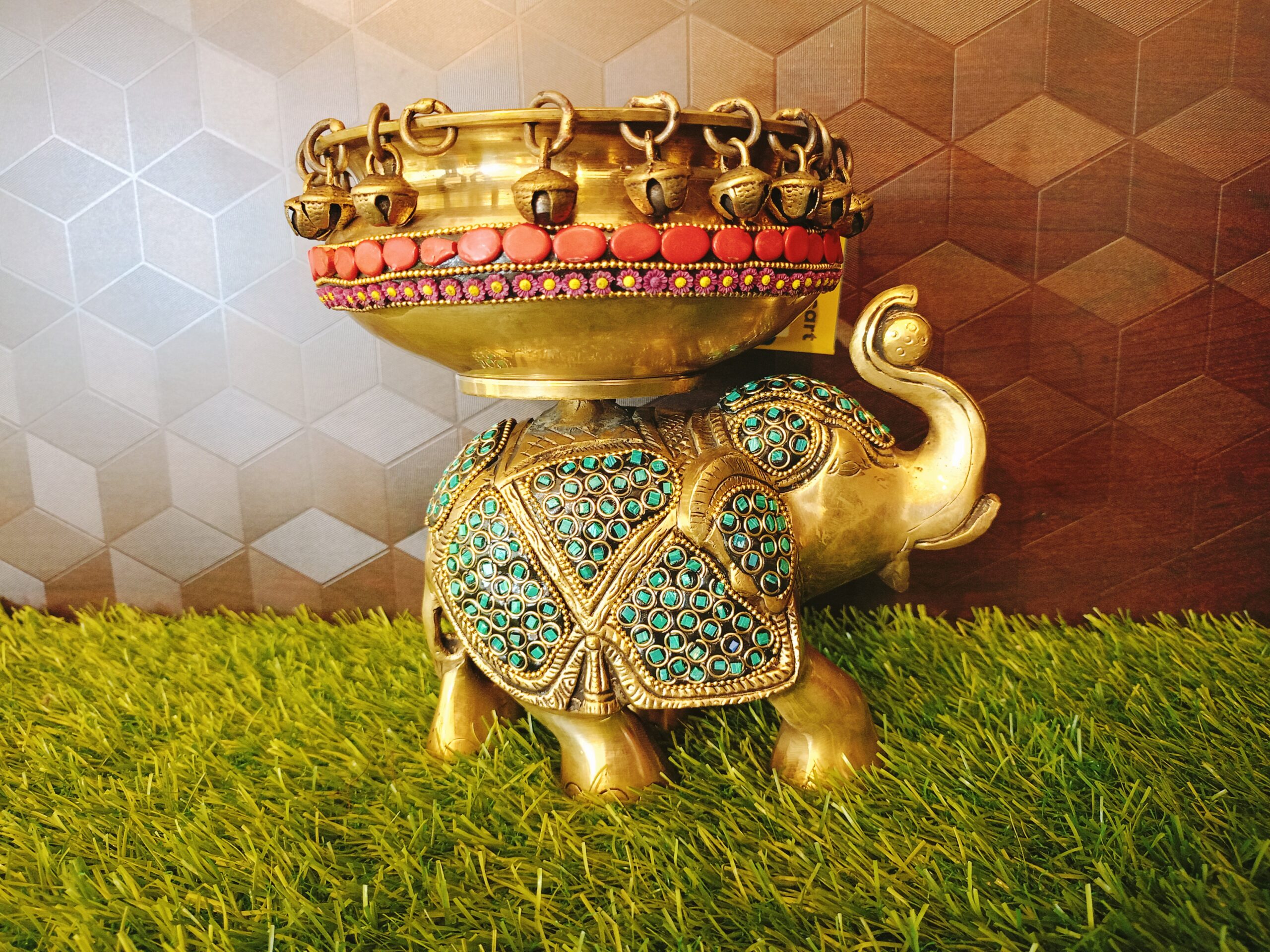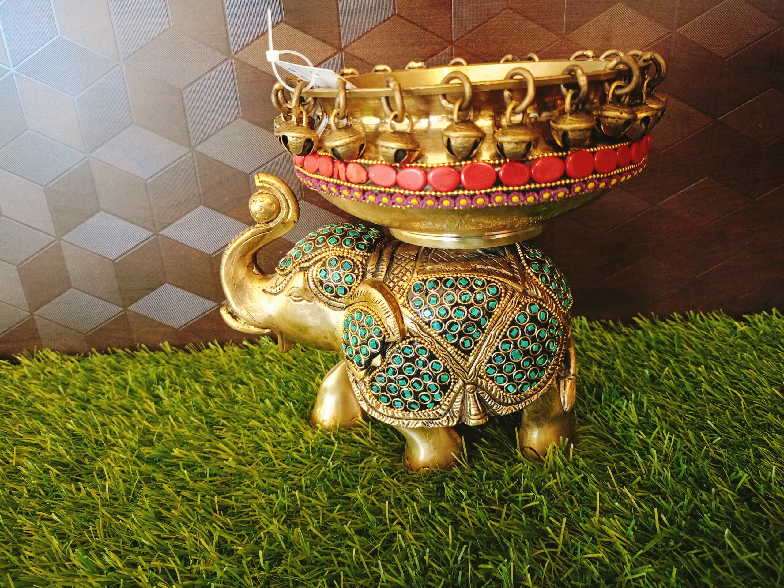 Brass Elephant Urli Stone Work Idol- 7″