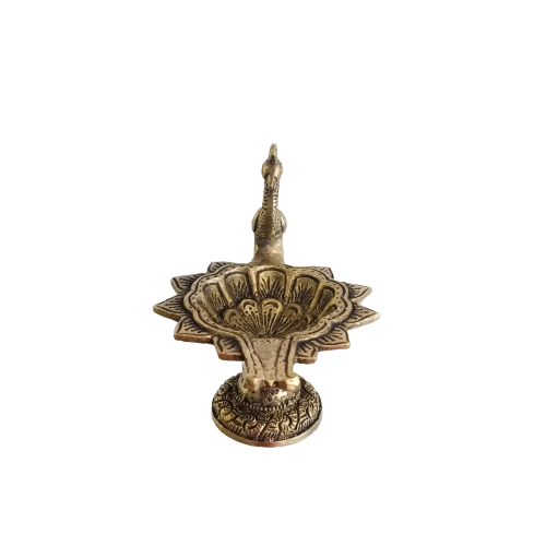 Brass Flower Diya with Peacock Handle- 4″
