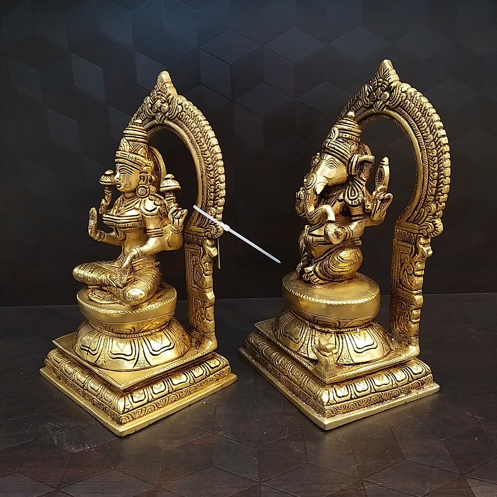 Brass Ganesha Lakshmi Set with Decorative Arch Statue- 10″