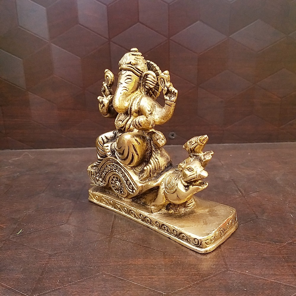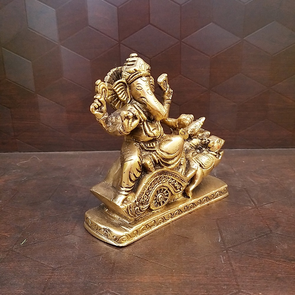 Brass Ganesha On Rat Cart Idol-4.5″