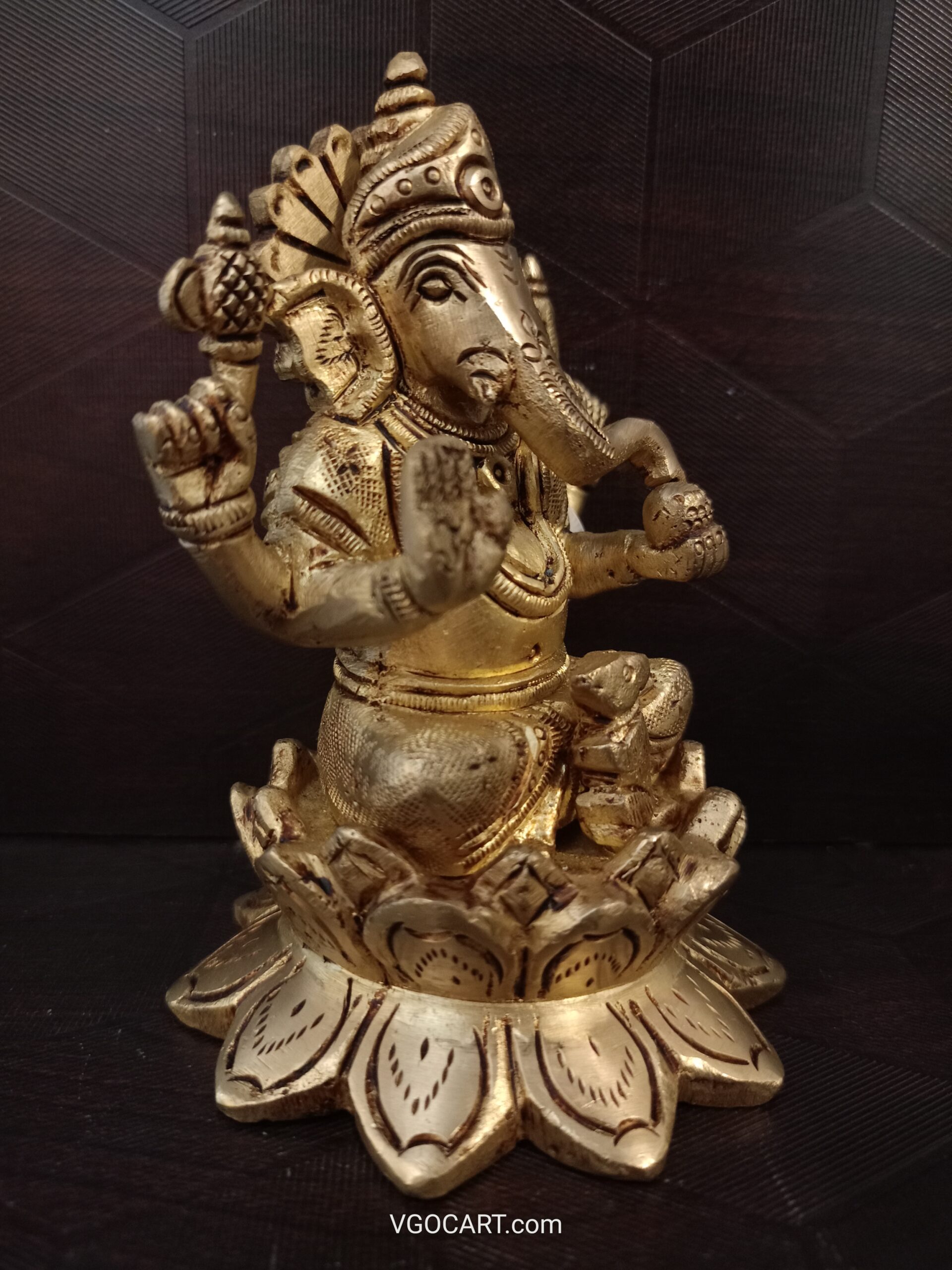 Brass Ganesha Sitting on Lotus Base Idol Usage: