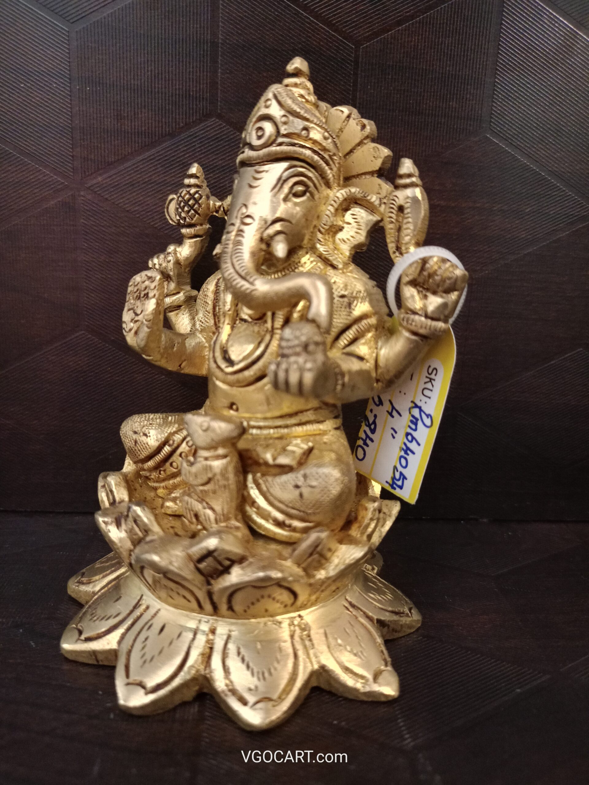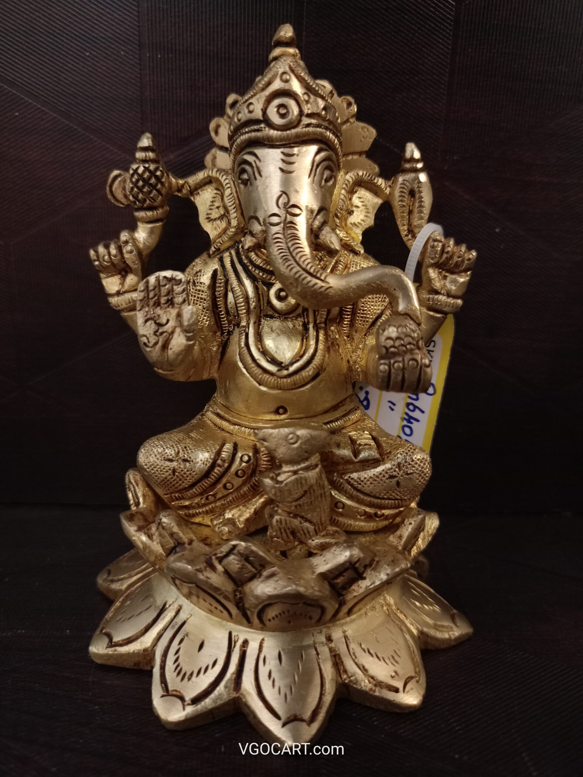 Brass Ganesha Sitting on Lotus Base Idol- 4″