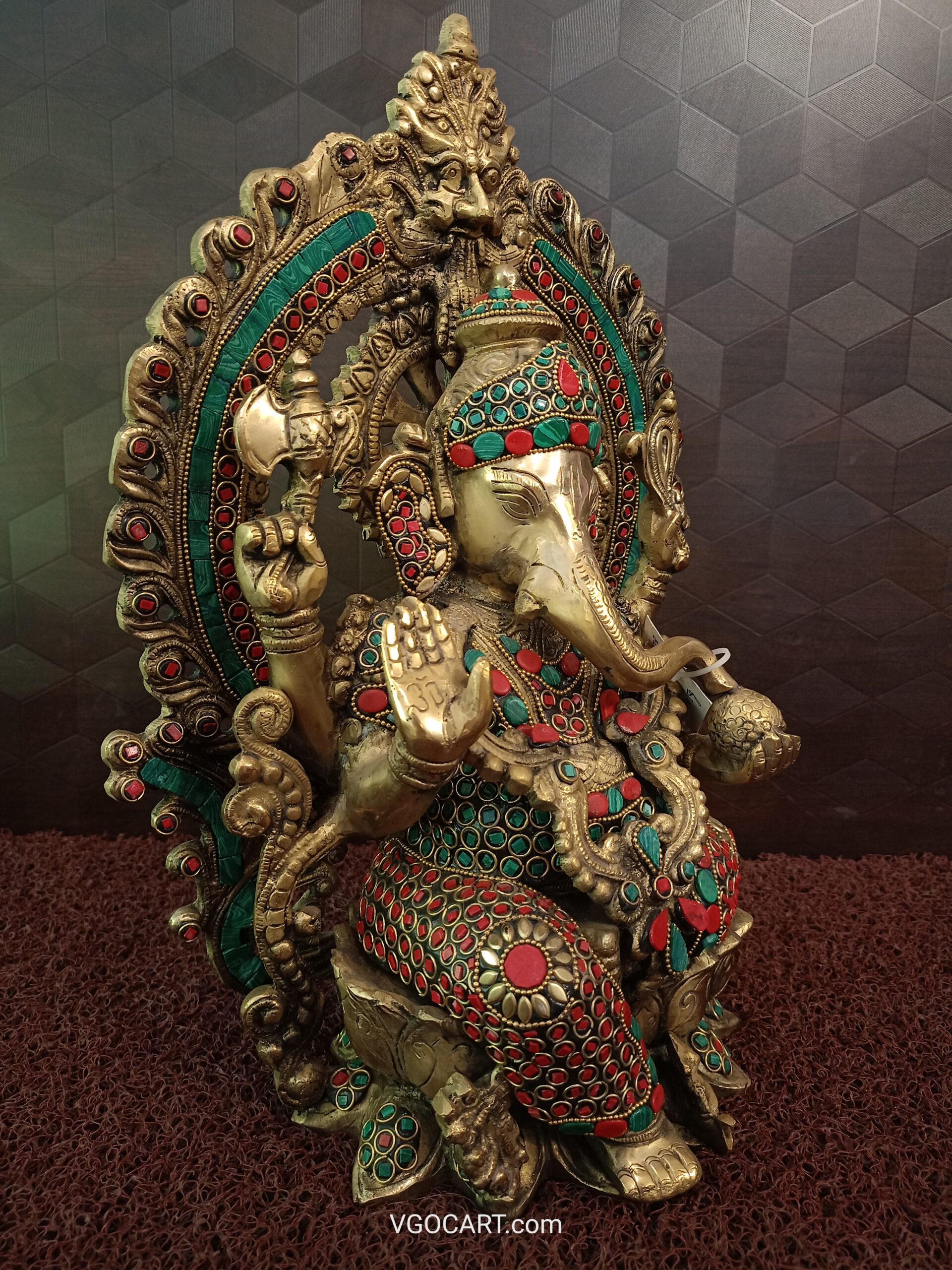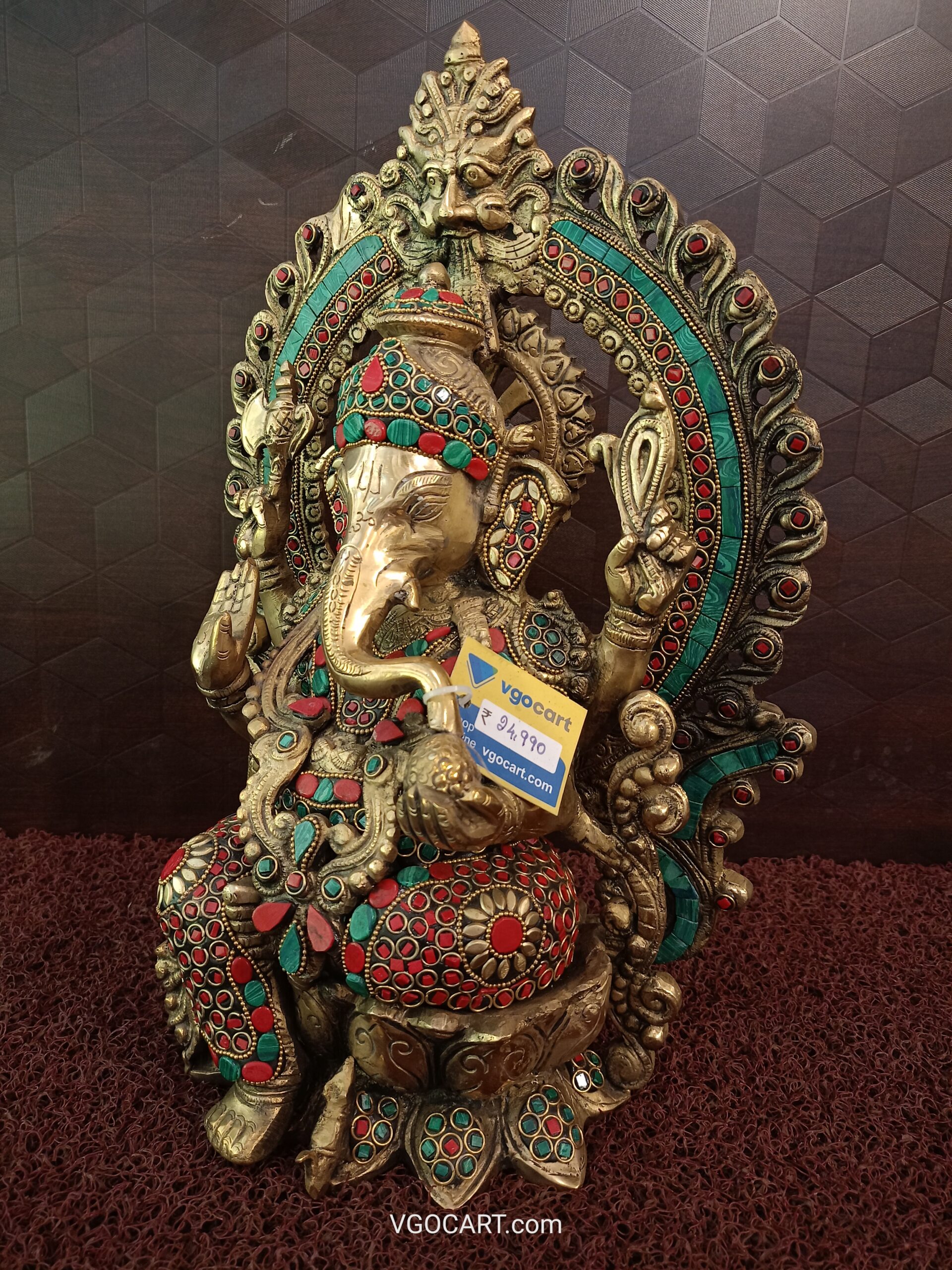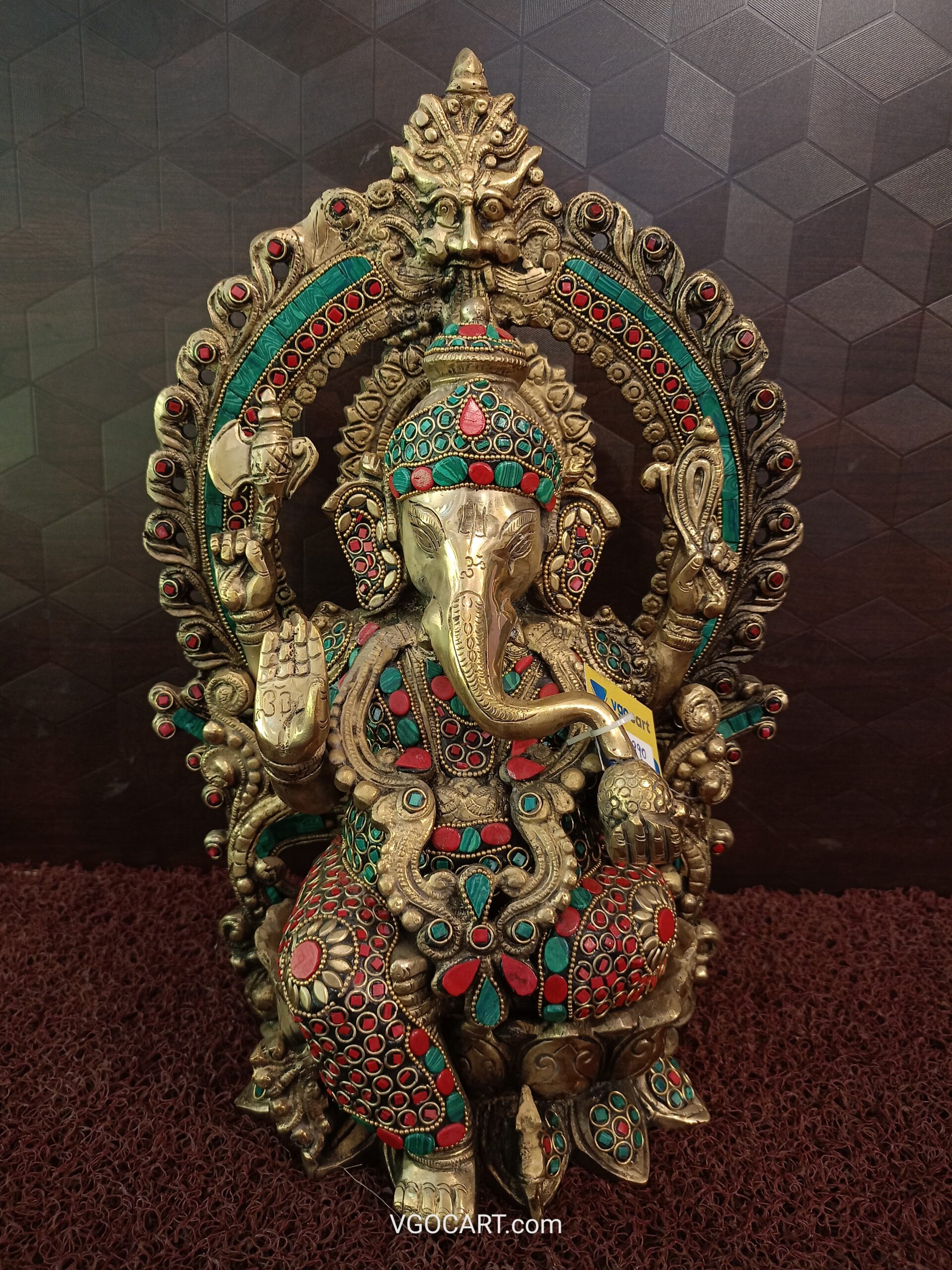 Brass Ganesha Stone finish is Uniquely Handcrafted with minute carving works and Multi Colour Stone works add a Unique Touch to th idol.Ganesha is Considered as Lord of Begining and Lord of Obstacle Remover.