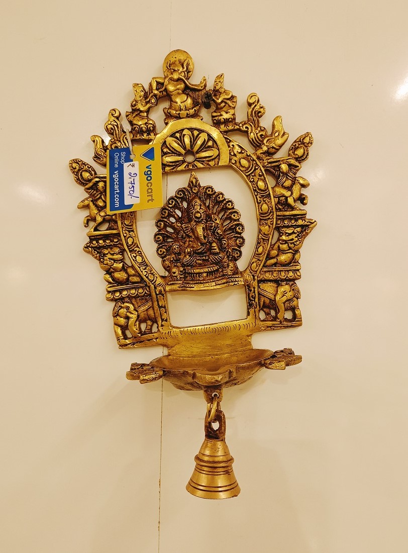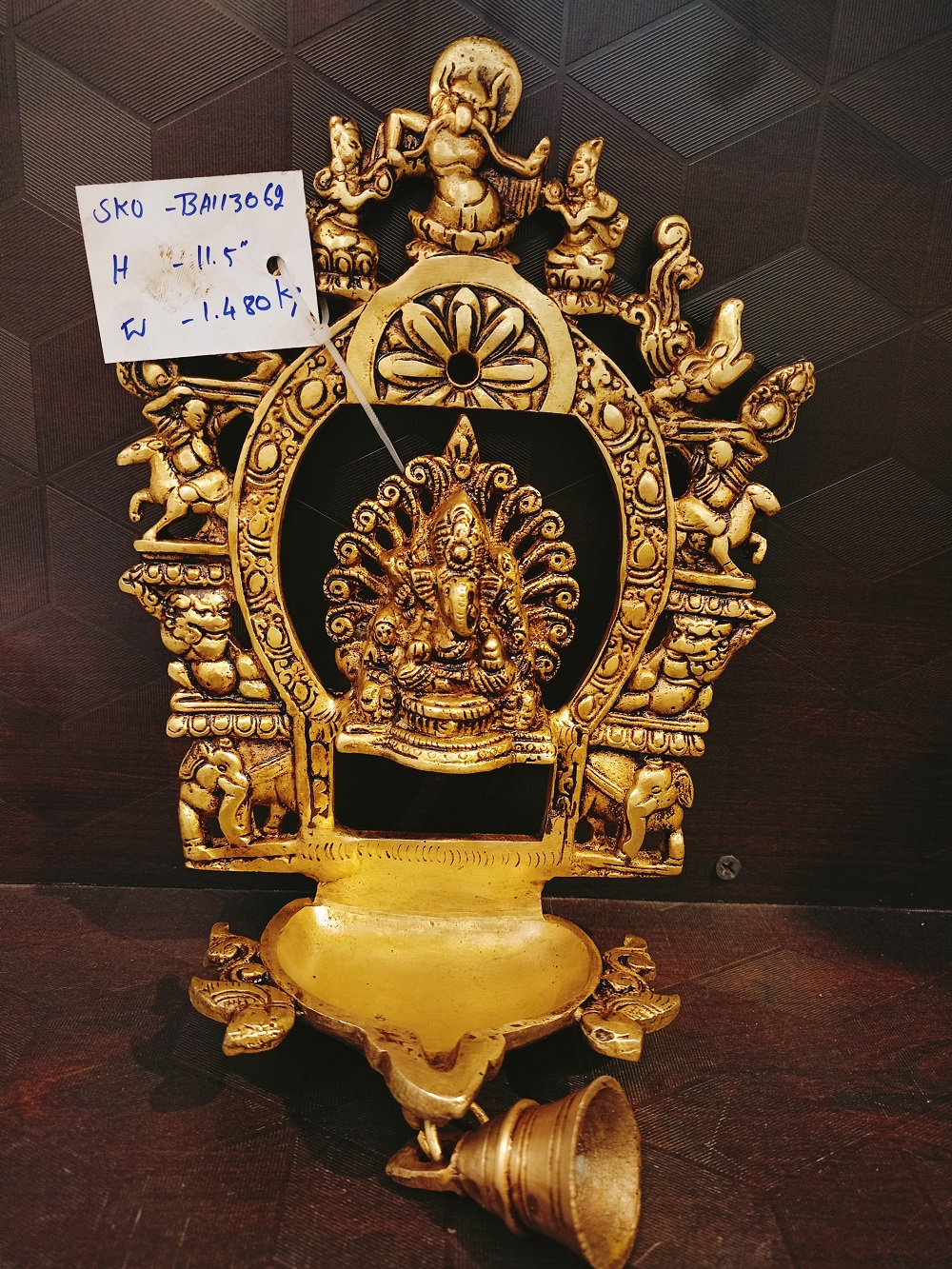 Brass Ganesha Wall Mount | Lord Vinayaga Wall Hanging With Bell 11.5”