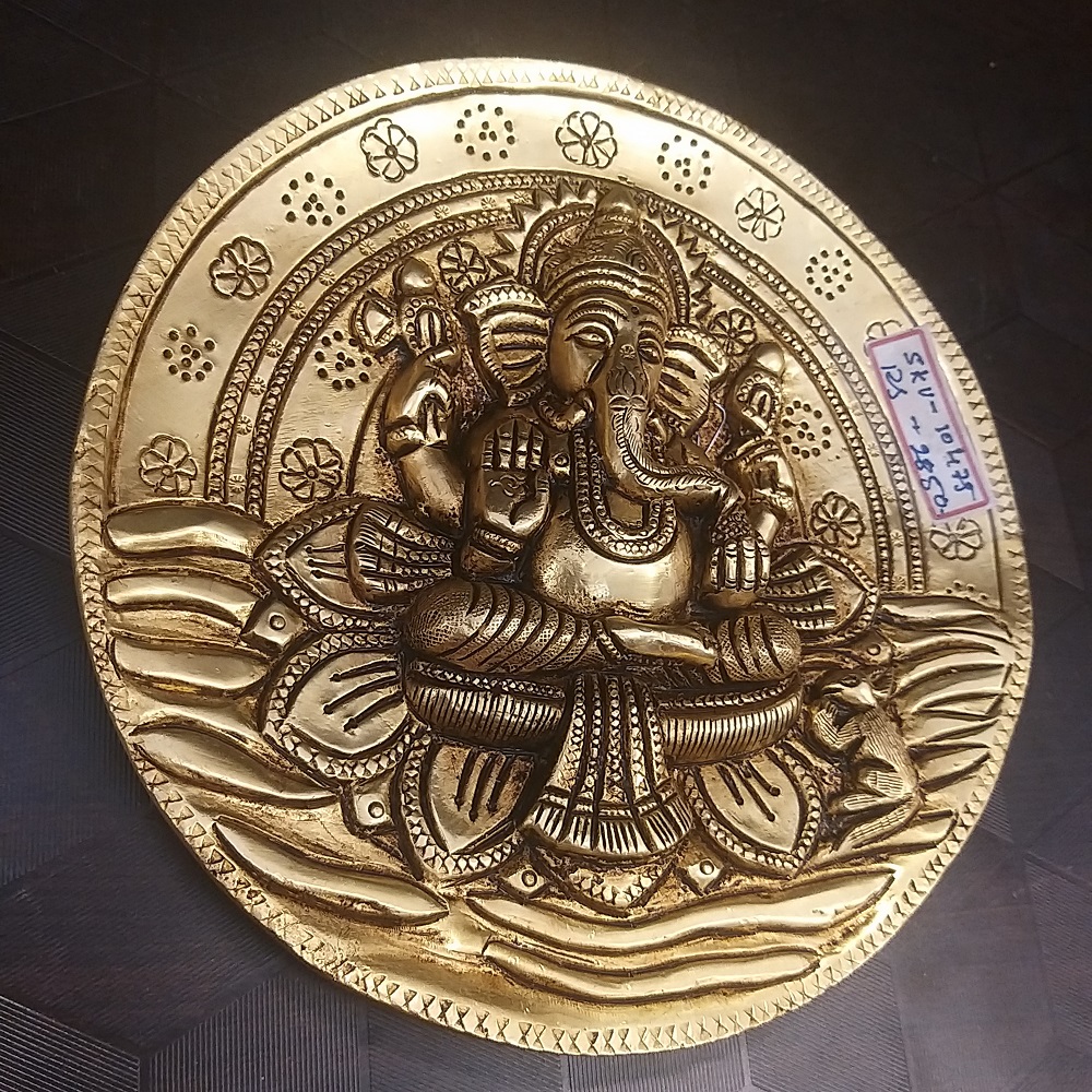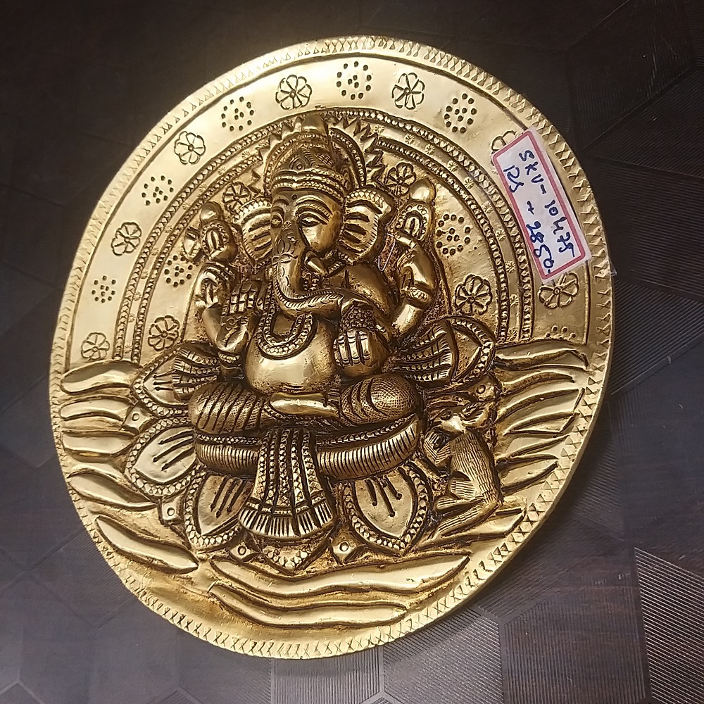 Brass Ganesha Wall Mount Round Shape- 10″