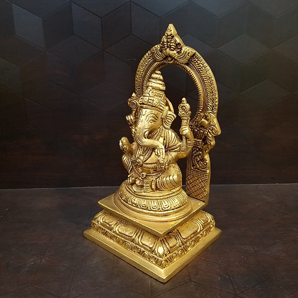Brass Ganesha with Arch Statue Usage: