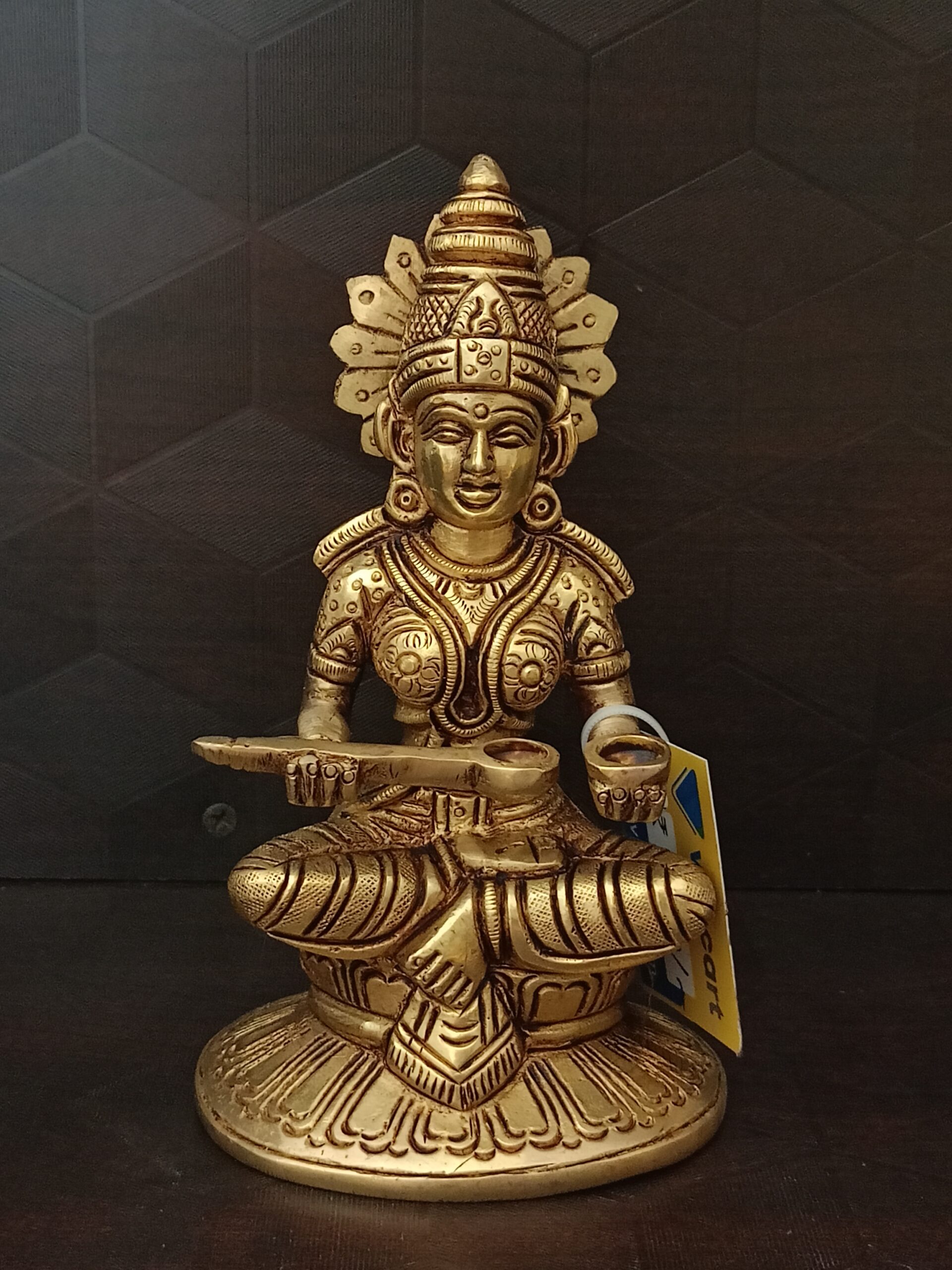 This brass idol of Annapoorani is considered as the incarnation of Goddess Parvati. Worshipping this brass idol not only blesses with material gain but also spiritual requirements. Her grace provides us with the blessings of health, wealth, and prosperity.