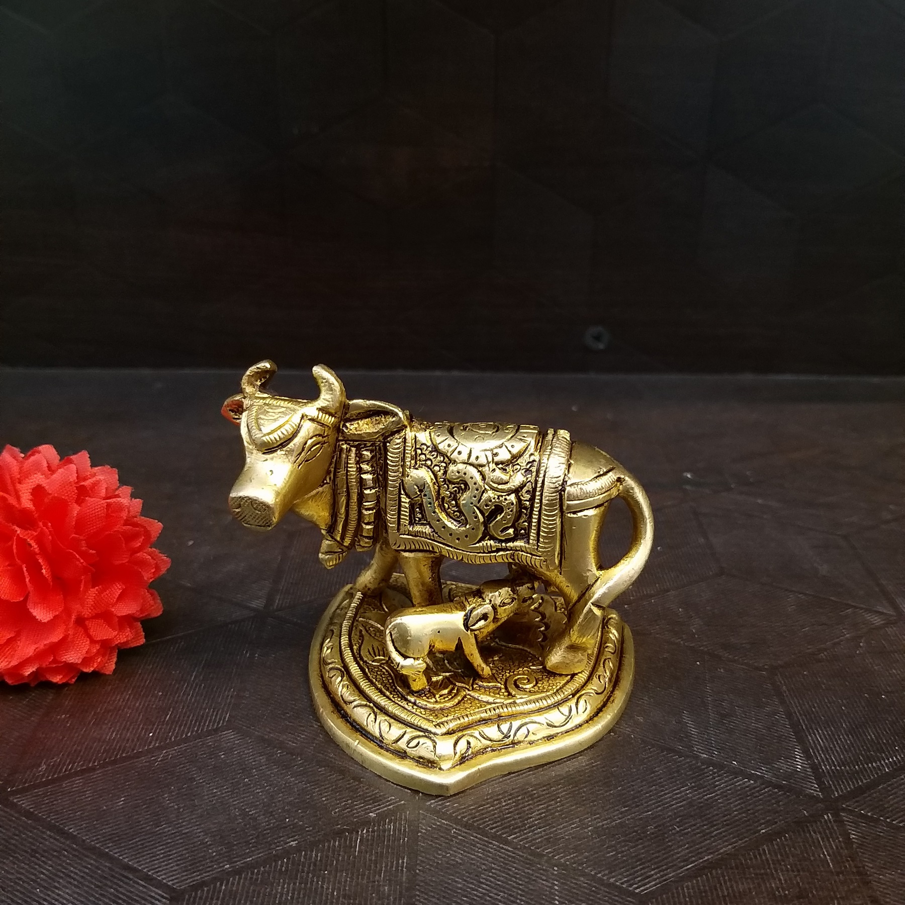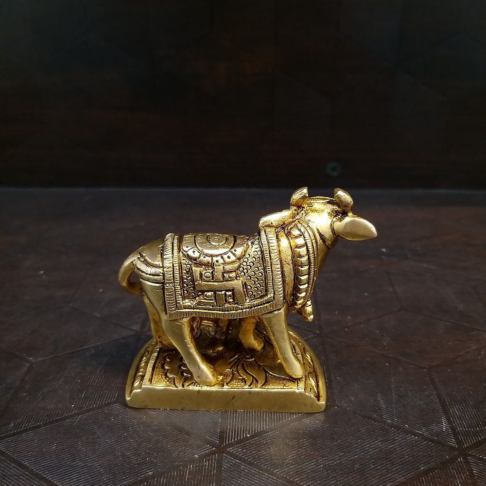 Brass Gomatha with Swastik Symbol Idol- 2″