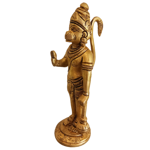 Lord Hanuman is a Chiranjeevi (one who lives a long life) and is known as the son of Vaayu (Vayu Putra). God Hanuman stands as one of the main roles of Epic Ramayana. Lord Hanuman is called the monkey who represents the form of a monkey. This brass statue of Lord Hanuman provides a royal look to the place wherever it is kept.