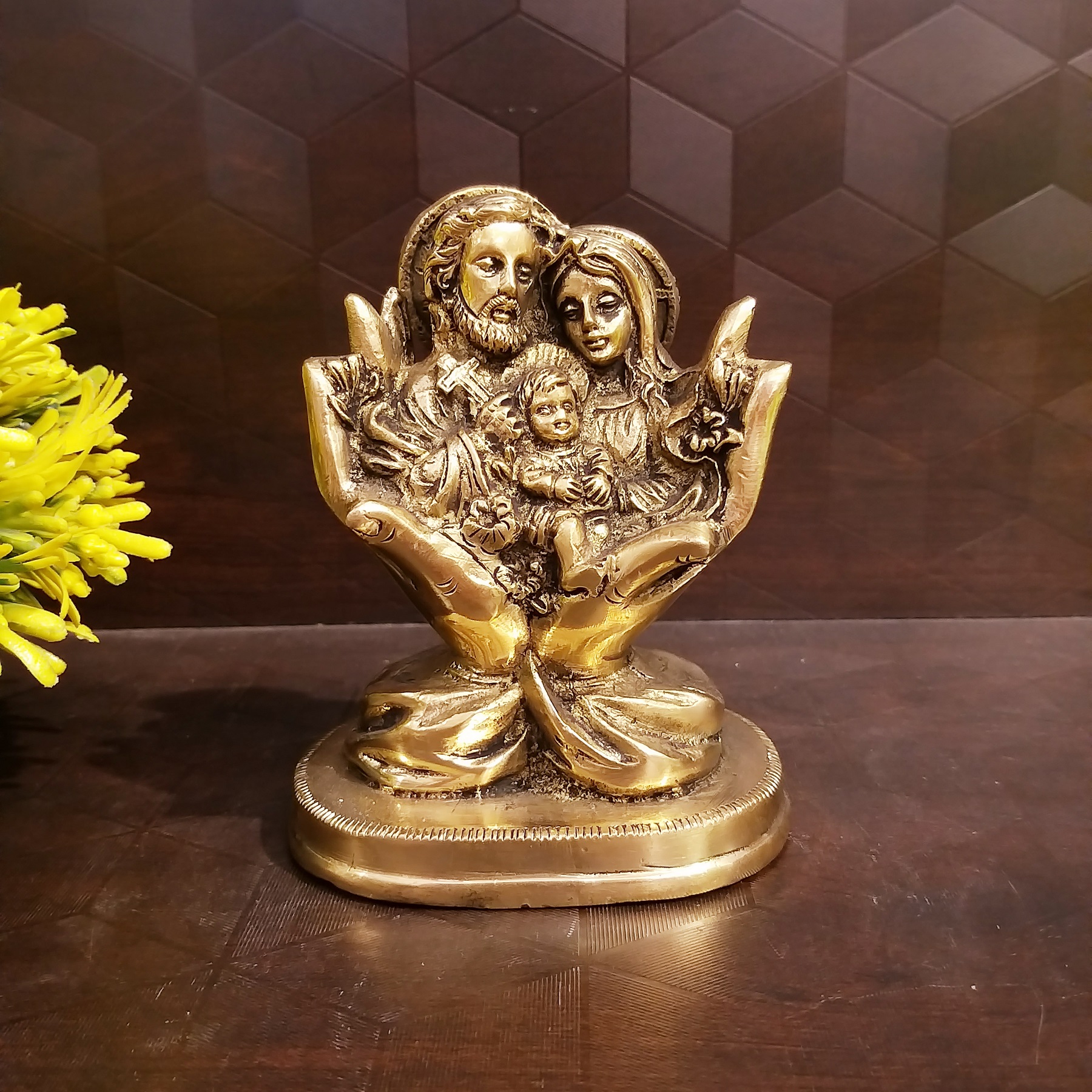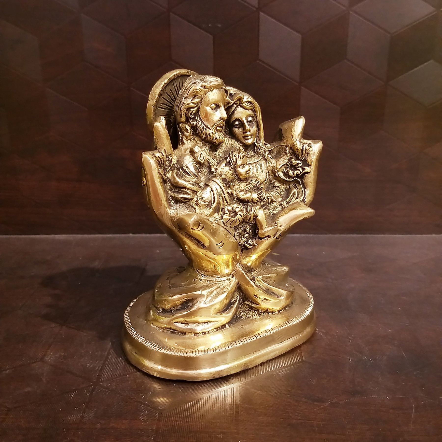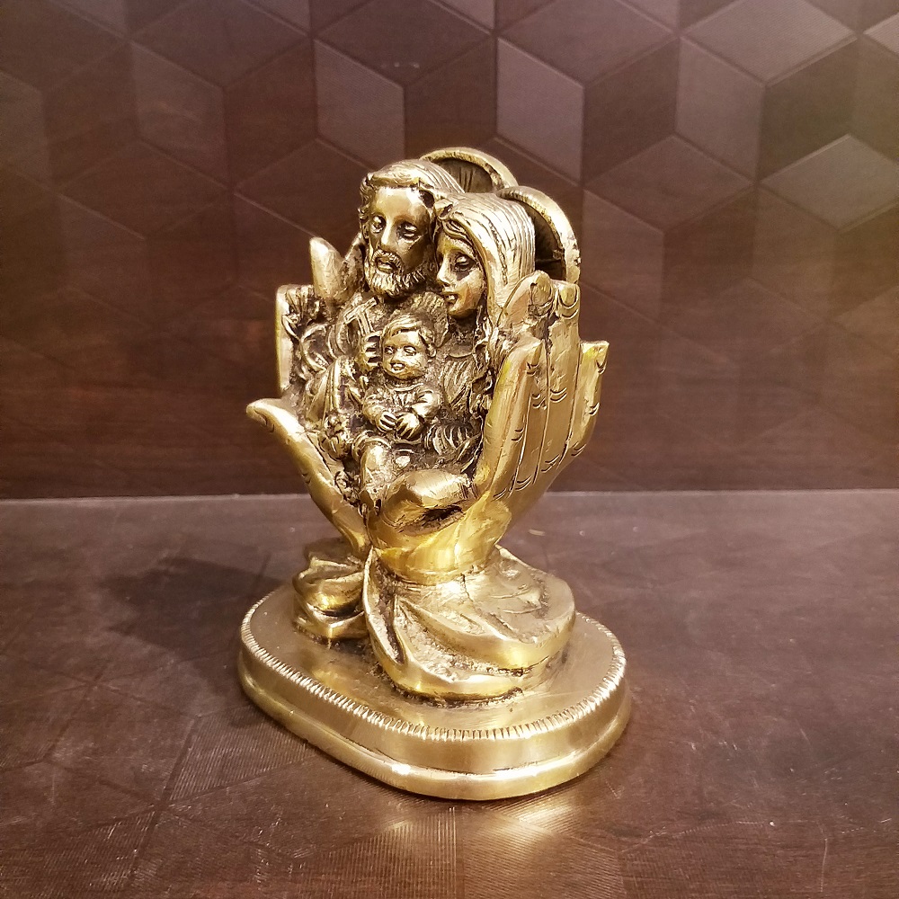 Brass Jesus Family In Hand Idol- 5.5″