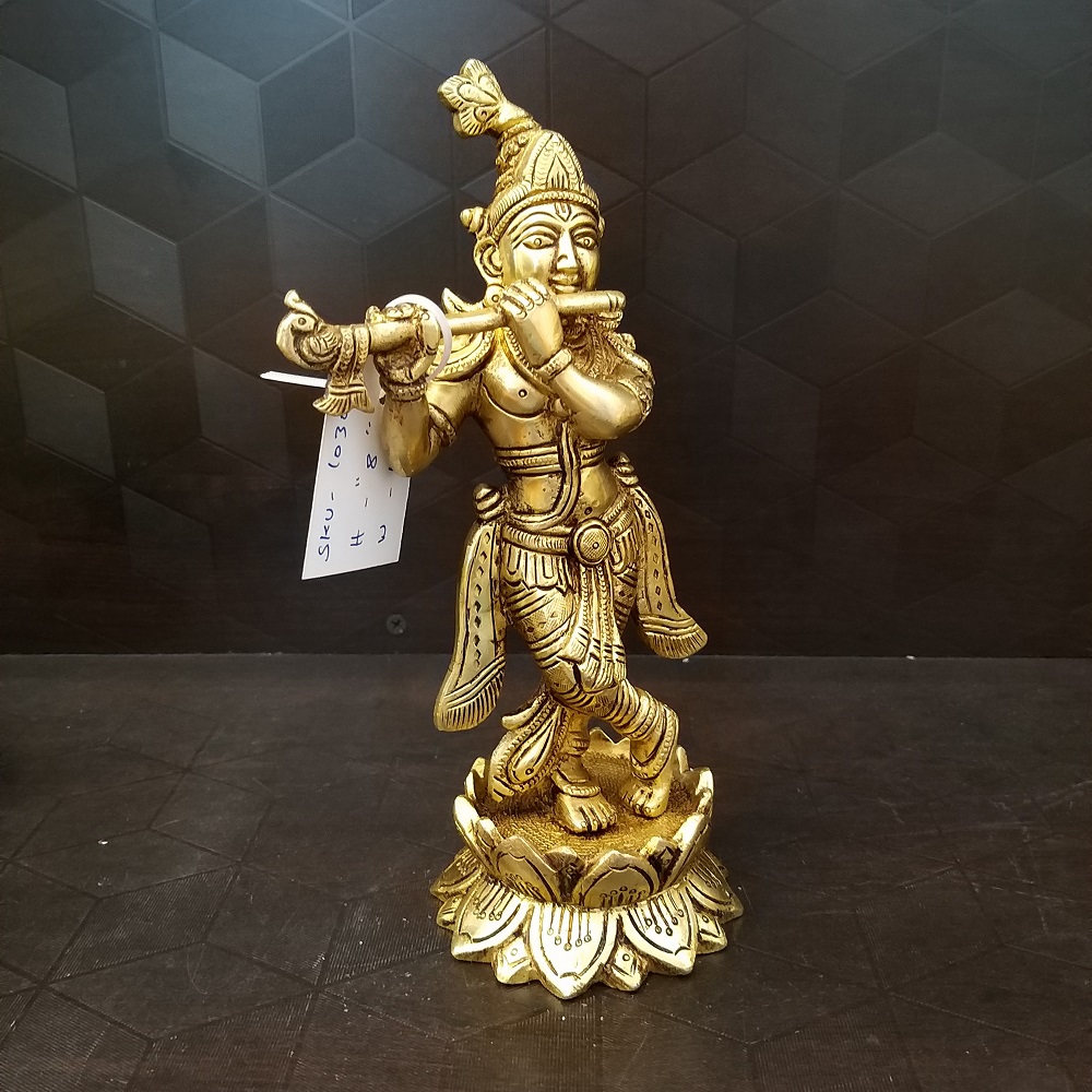 This Lord Krishna statue of brass is an artistic sculpture that is handcrafted with beautiful designs and works involved in it. This creates devotional vibes and a majestic look wherever it is placed.