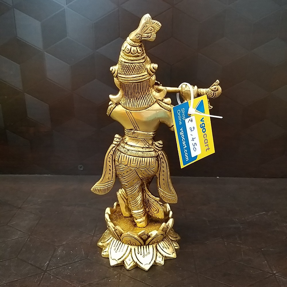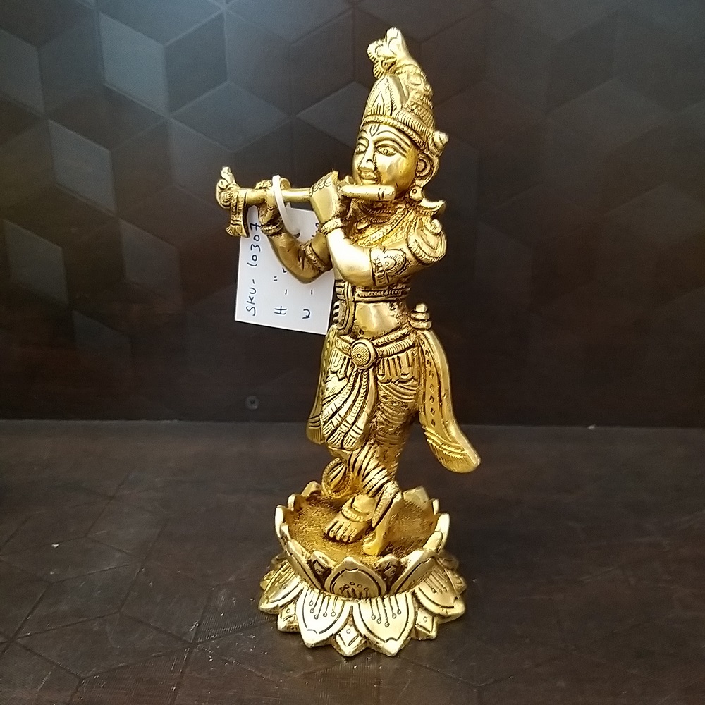 Brass Krishna On Lotus Base Idol- 8″