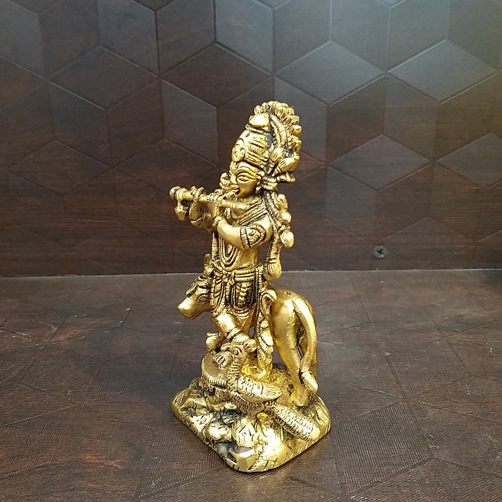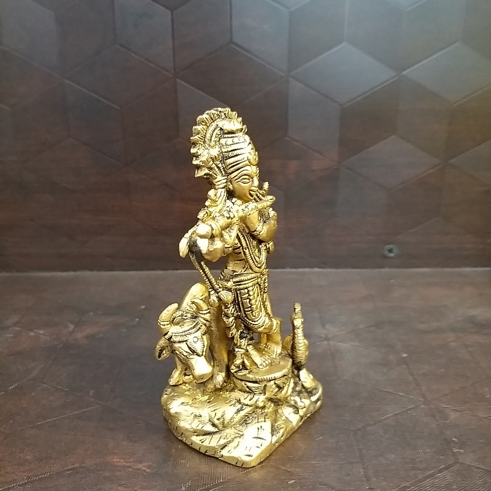 Brass Krishna With Cow and Peacock Usage: