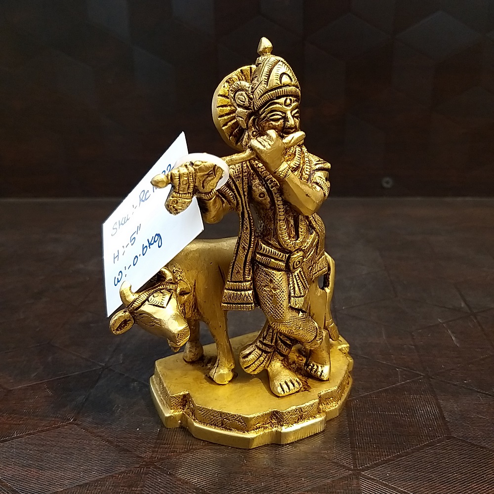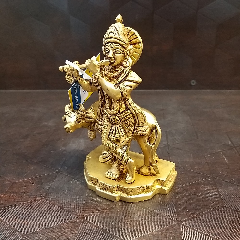 Lord Krishna is the protector of cows, he knows cows very well when he lives in Gokula. Krishna is also known as Gopala. He used to play with cows when he was in Gokula. Gomatha is considered an auspicious idol. Brass Krishna and Cow idol for Home Decor, this brass statue of lord Krishna is made of shining brass and crafted with antiques.