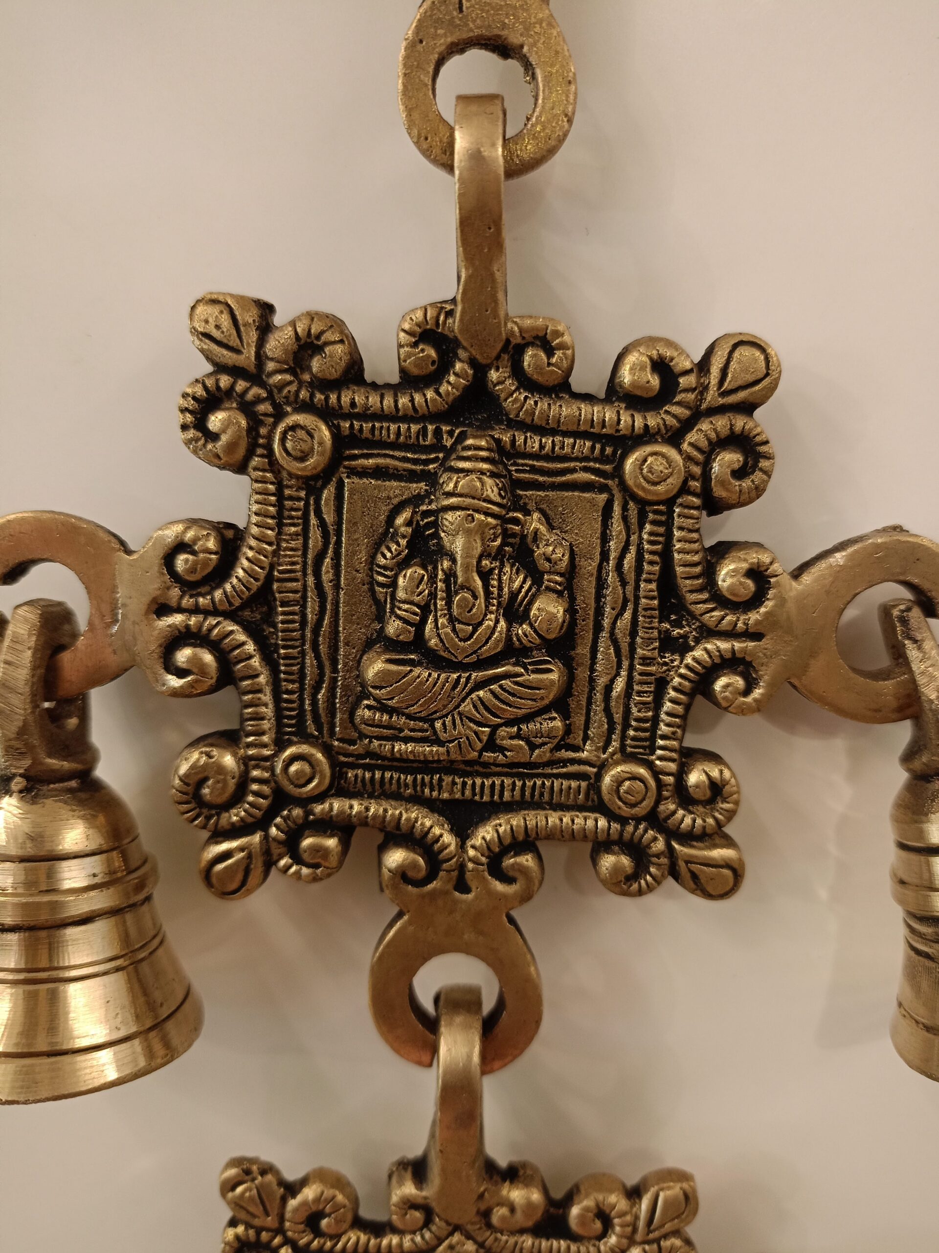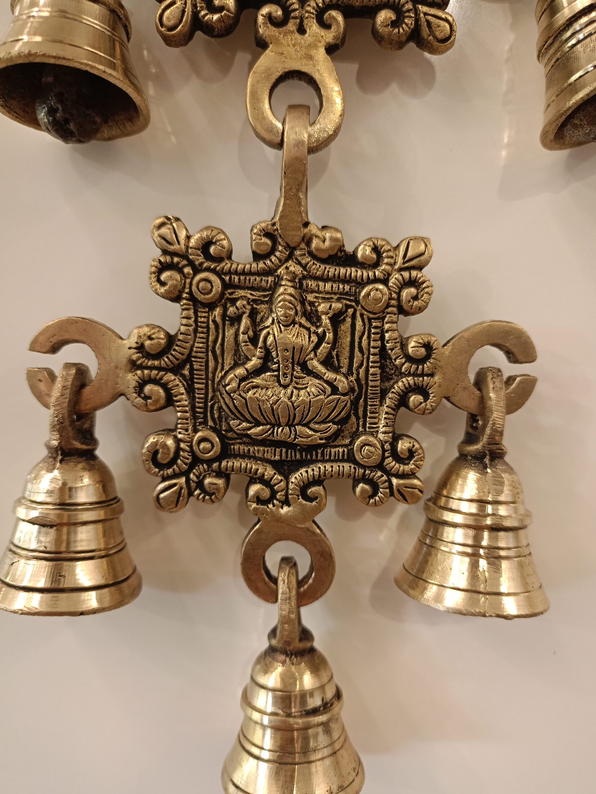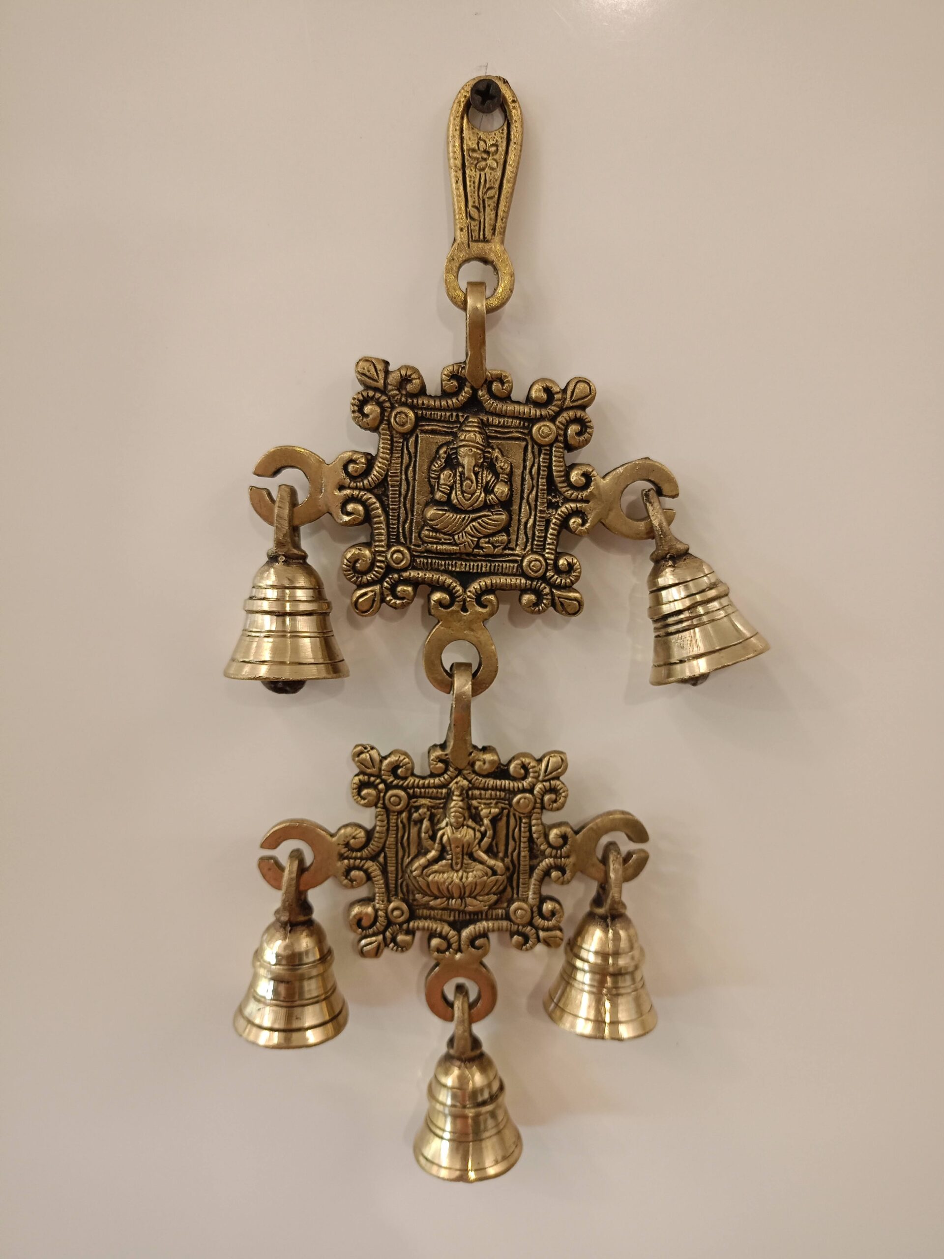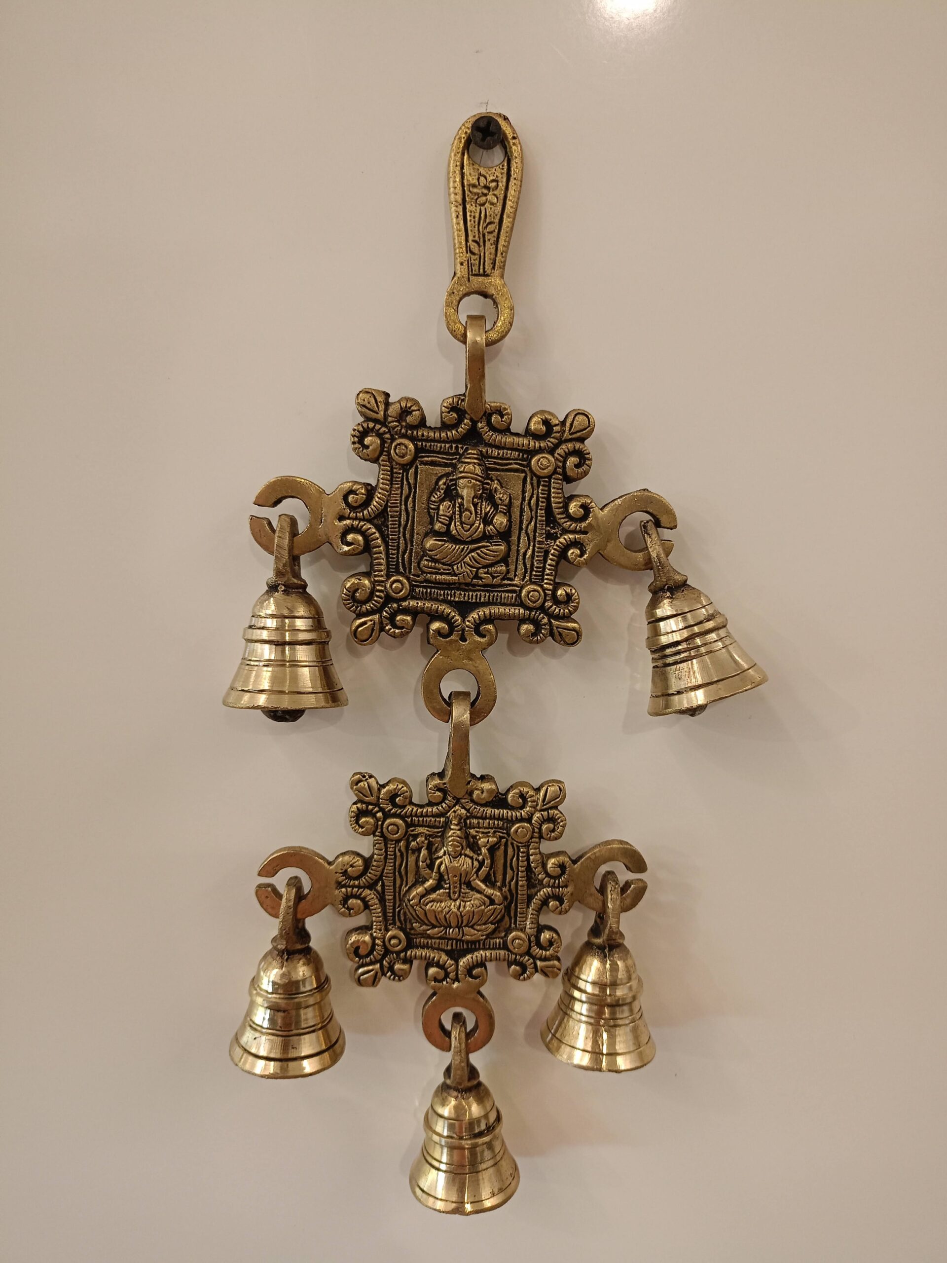 Brass Lakshmi, Ganesha With Bell Wall Hanging Statue 11″