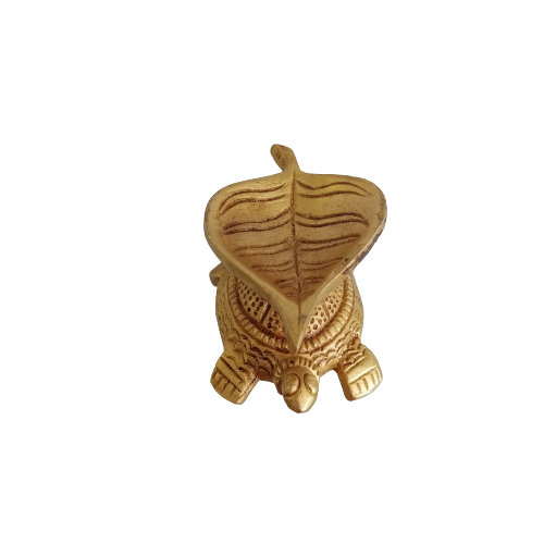 Brass Leaf Diya on Tortoise has a golden-finished matte look and thus is perfect for decoration in your home or temple. This can help to adorn your place with divine vibes. In this brass leaf designer diya, the diya represents purity, goodness, good luck, power, and divinity, whereas the tortoise as per Vastu shastra represents harmony, peace, long life, and positive vibes.