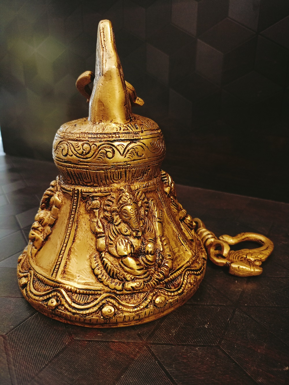 Brass Lord Ganesha Design Bell | Pure Brass Hanging Ganesha Bell For Temple/ Home 29”