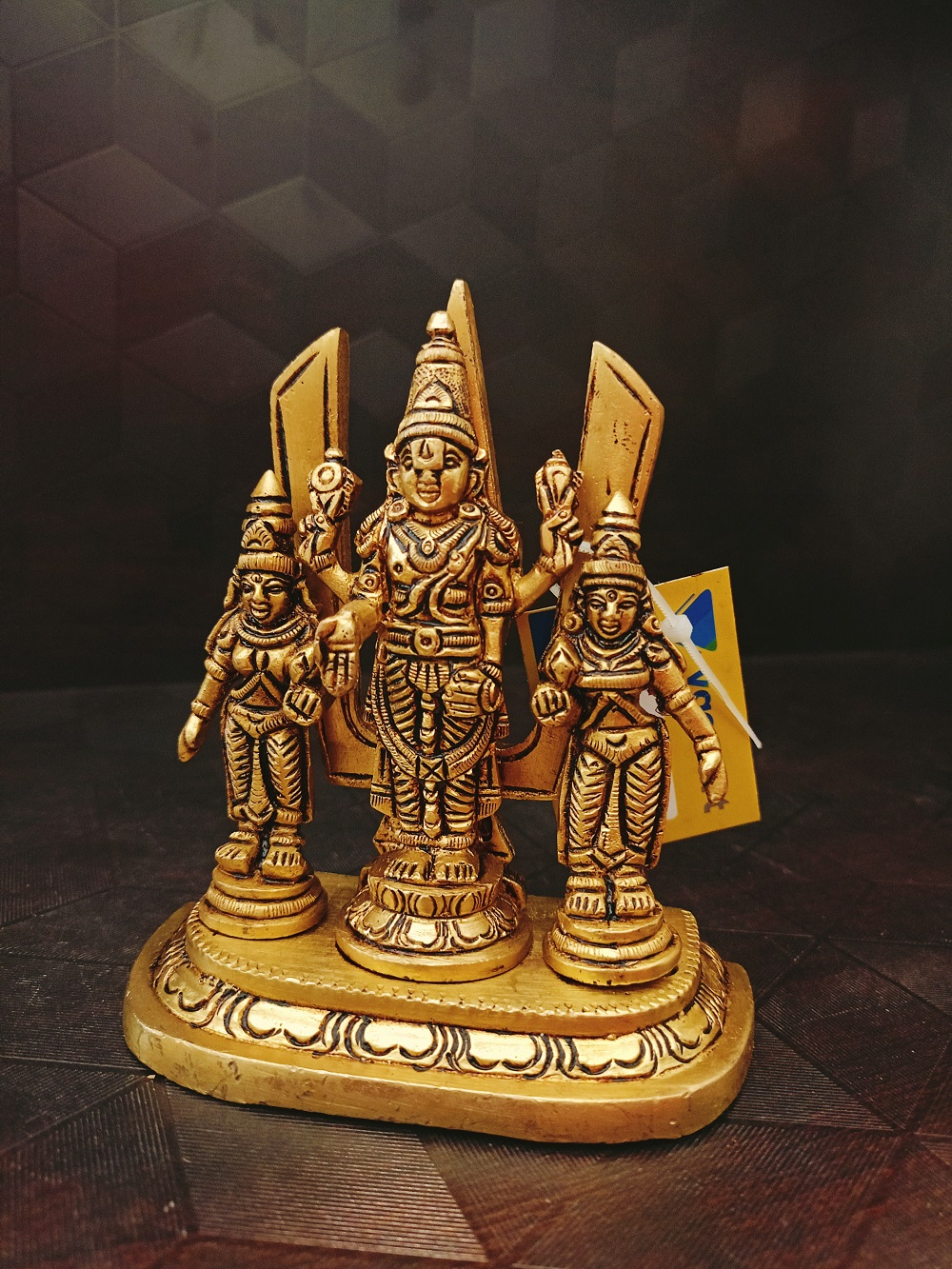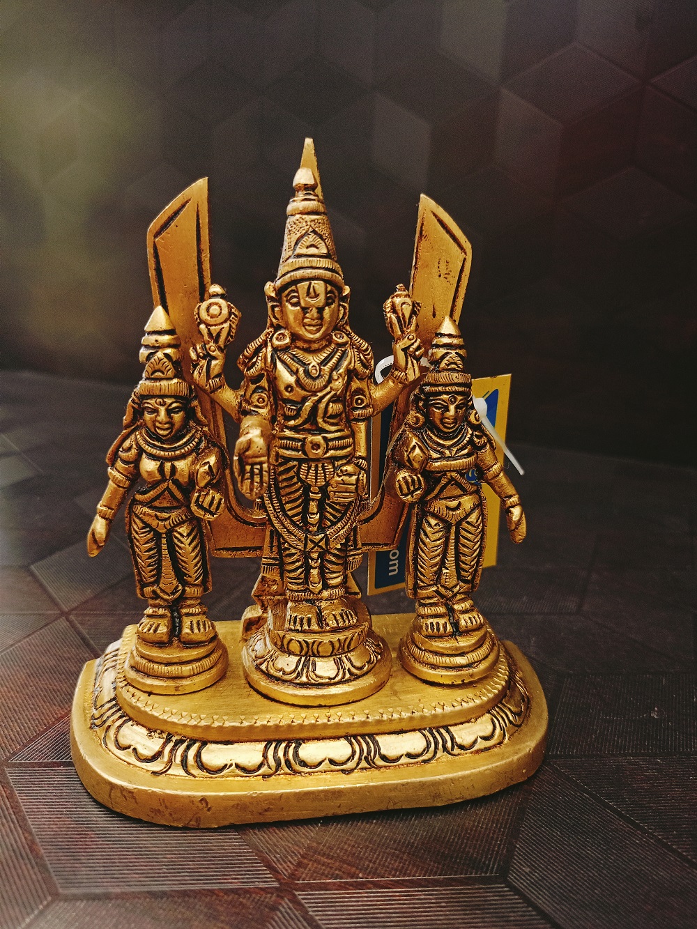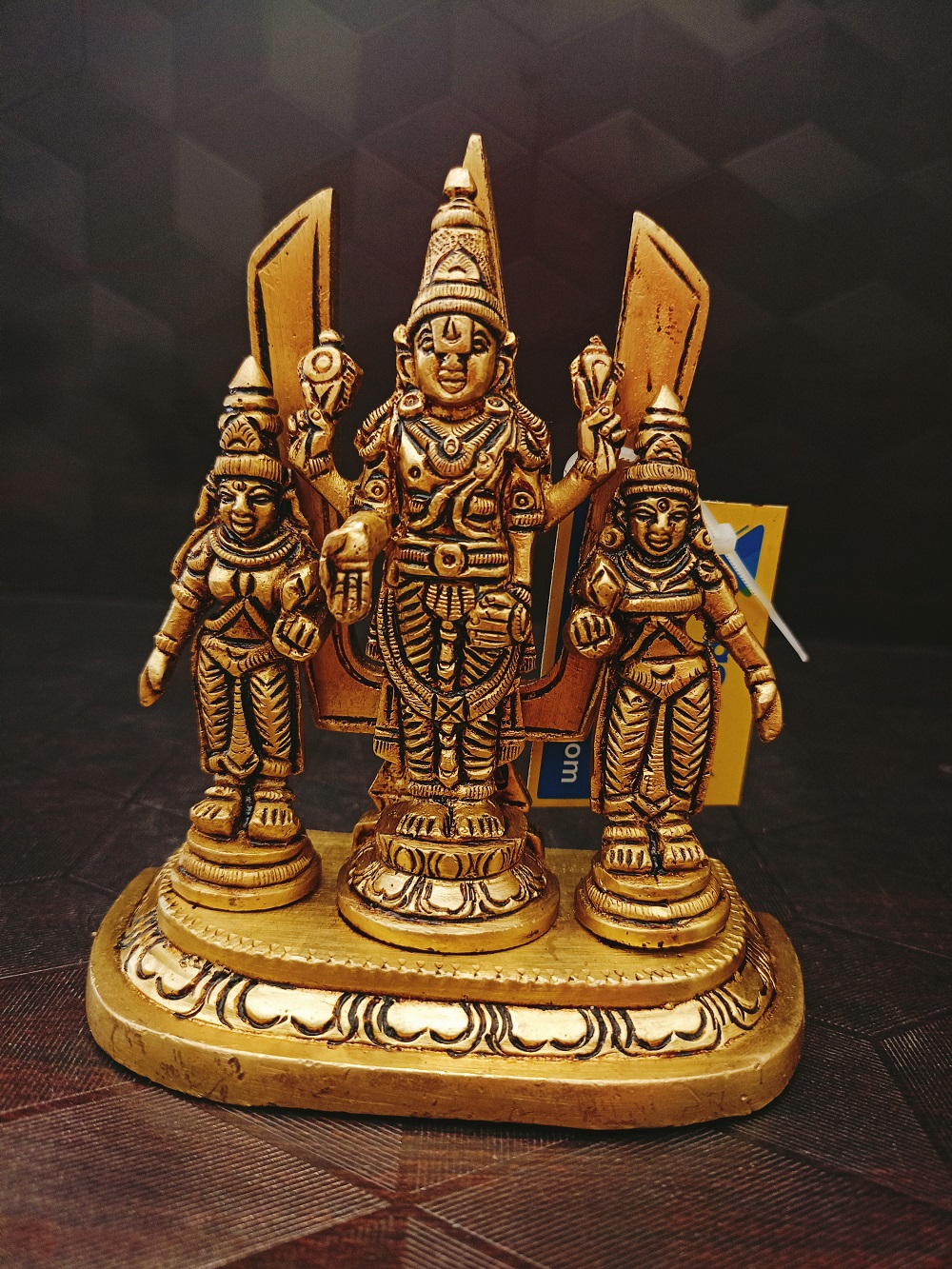 Brass Lord Perumal With Sridevi Bhudevi And Namam Statue Usage: