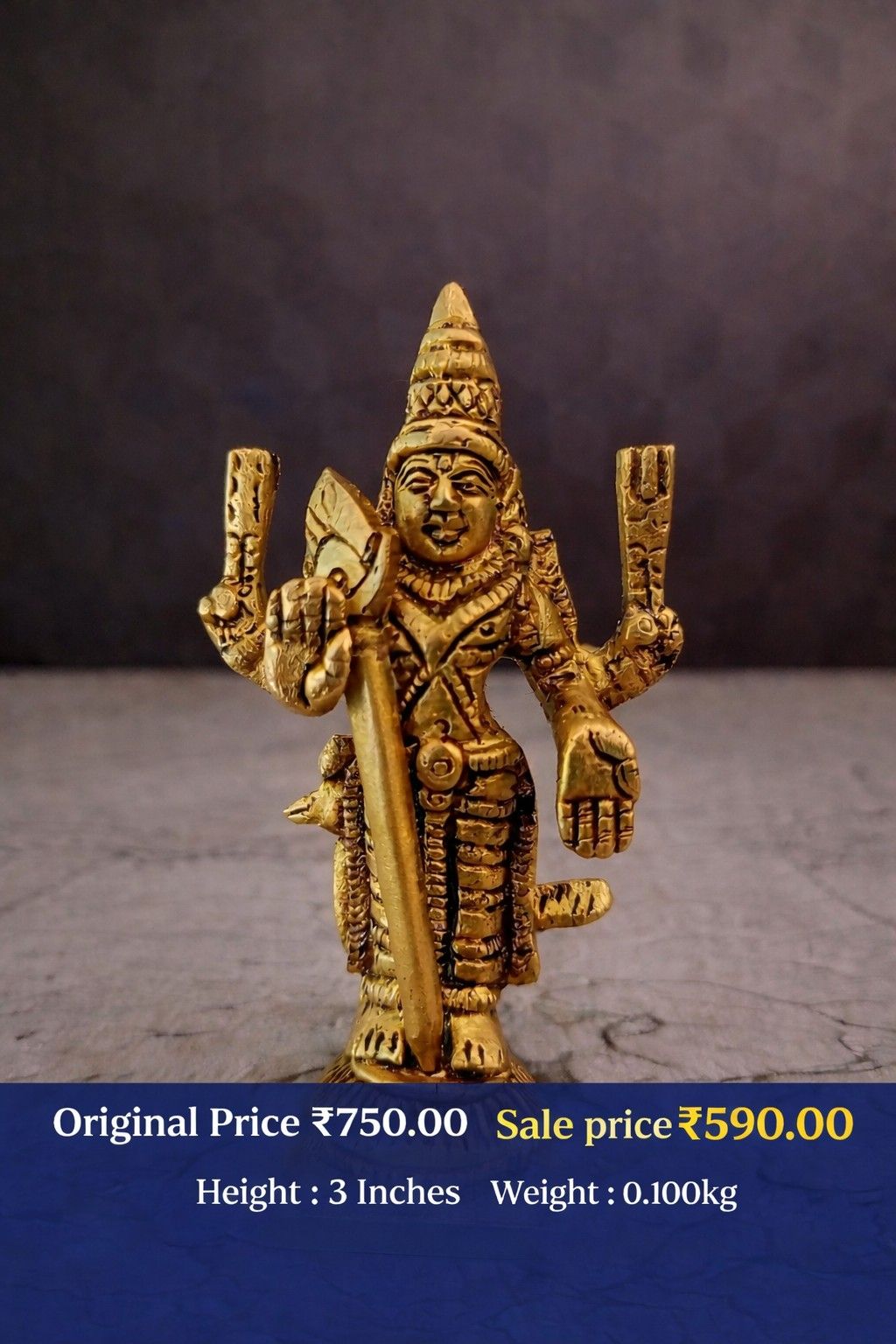 This small brass Murugan idol (3 inch) is ideal for daily worship rituals and special occasions such as Thai Poosam, Panguni Uthiram, and Skanda Sashti. Its compact size ensures easy placement in pooja shelves, small altars, office desks, and even car dashboards.