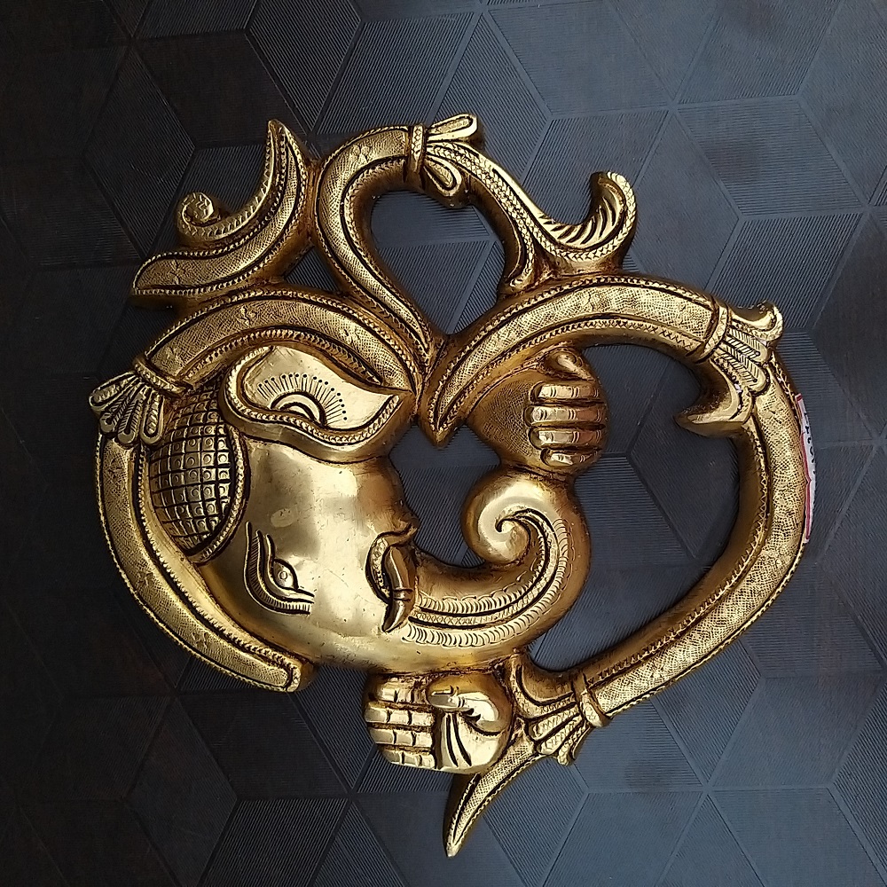 Ganesha represents wealth, strength, and prosperity. The brass Ganesha wall hanging is depicted with a blessing posture and also has rich-looking carvings.
