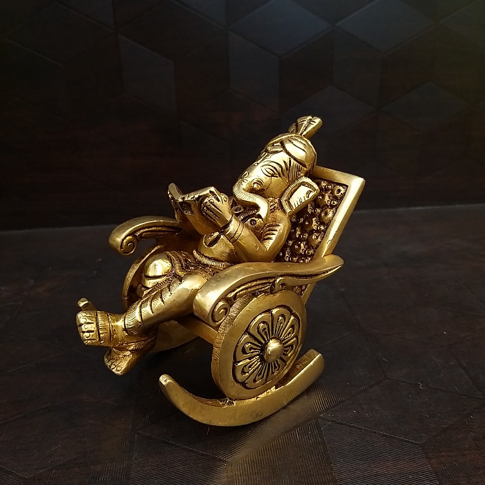The Ganesha statue has a beautiful purpose in the home, we can keep this as a puja item or home decor. This chair Ganesha idol also has an enticing design and classic work of craftsmanship, this statue is made of Brass. These things make this idol perfect for home decor.