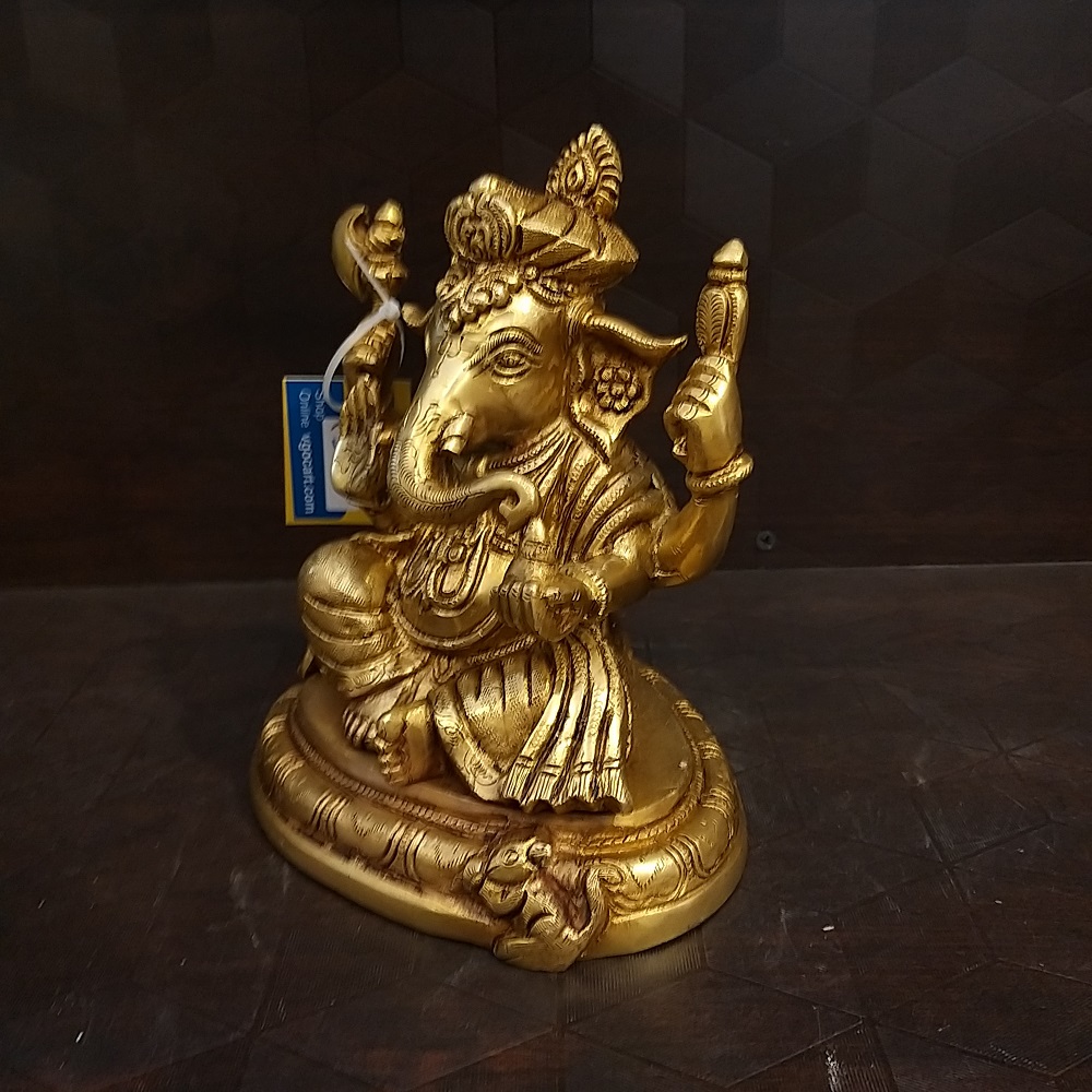 Beautiful and attractive brass Ganesha idol is also known as Pagadi Ganesha, where the highlighted part is Pagadi, which is the reason why he got this name.