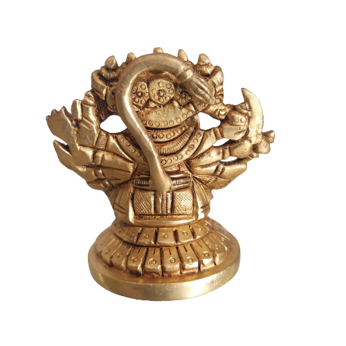 This brass Panchamukhi hanuman statue is a form of hanuman taken to rescue and save the kidnapped Lord Rama and Lakshmana by Ravana’s brother Mahi Ravana in Patal Lok, where his life is hidden in the lamp that was lit in 5 directions should be destroyed at the same time to make the mission possible.