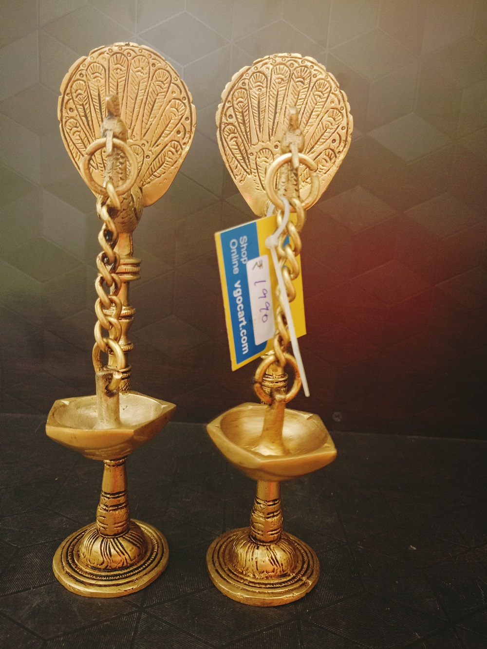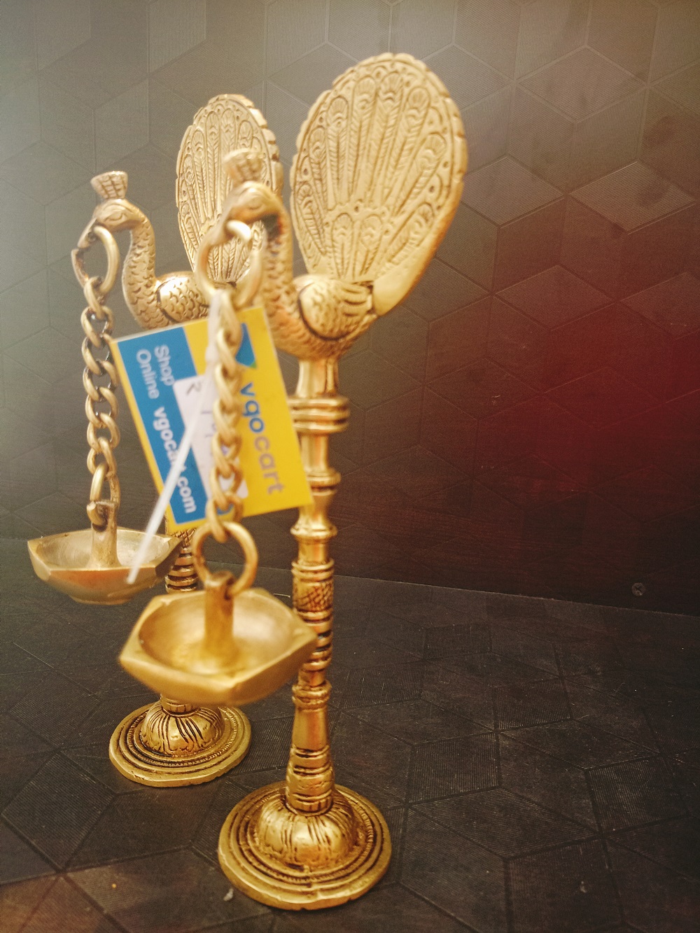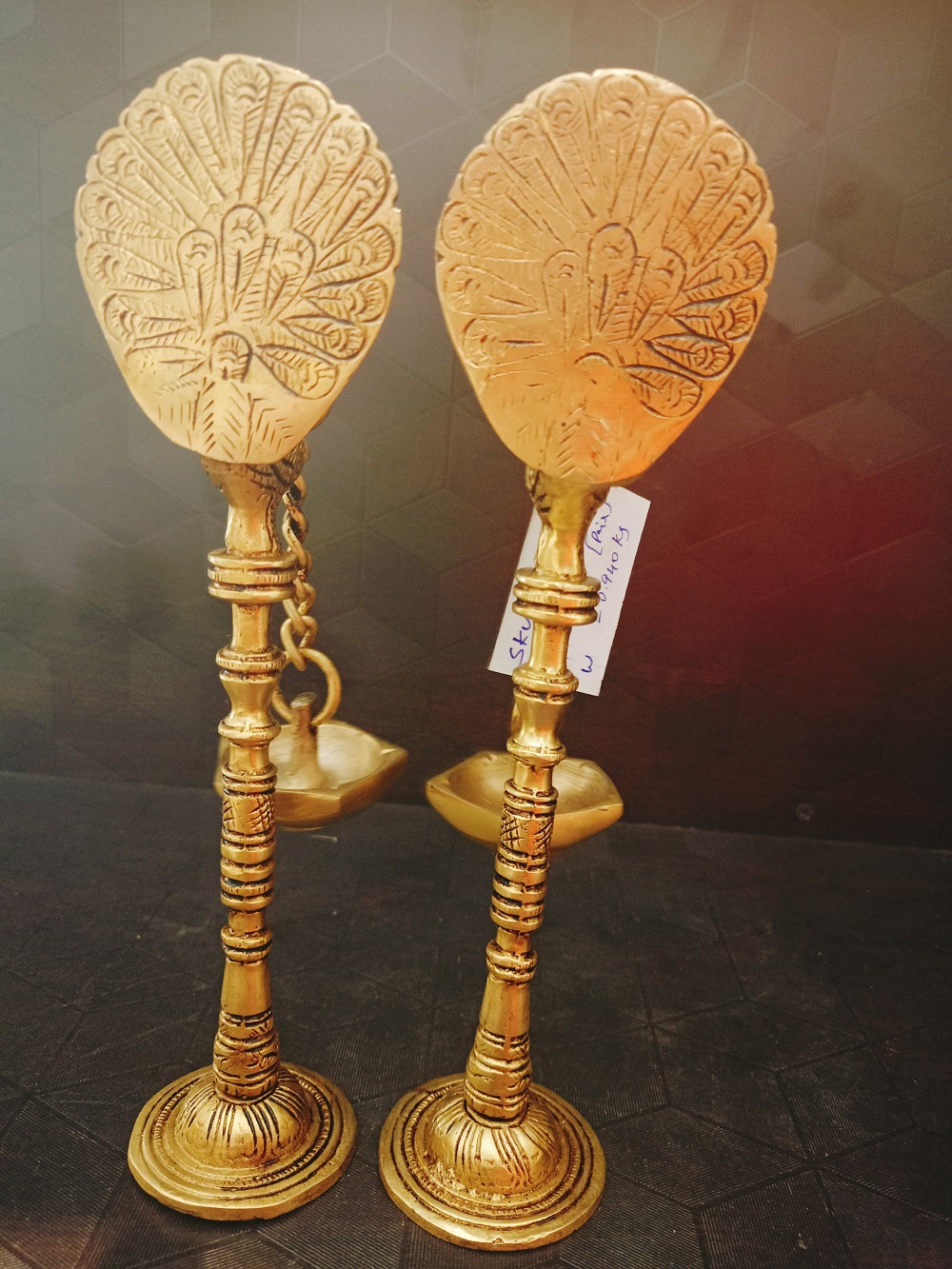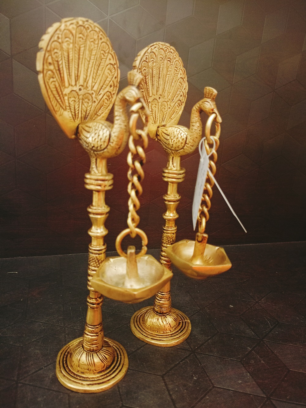 Brass Peacock Diya Pair | Pure Brass Peacock Vilakku Set 10”