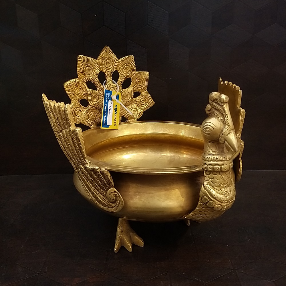 Keeping this brass pair of peacock uruli is considered very lucky. Placing uruli on your home entrance will remove the negative energies from your home.