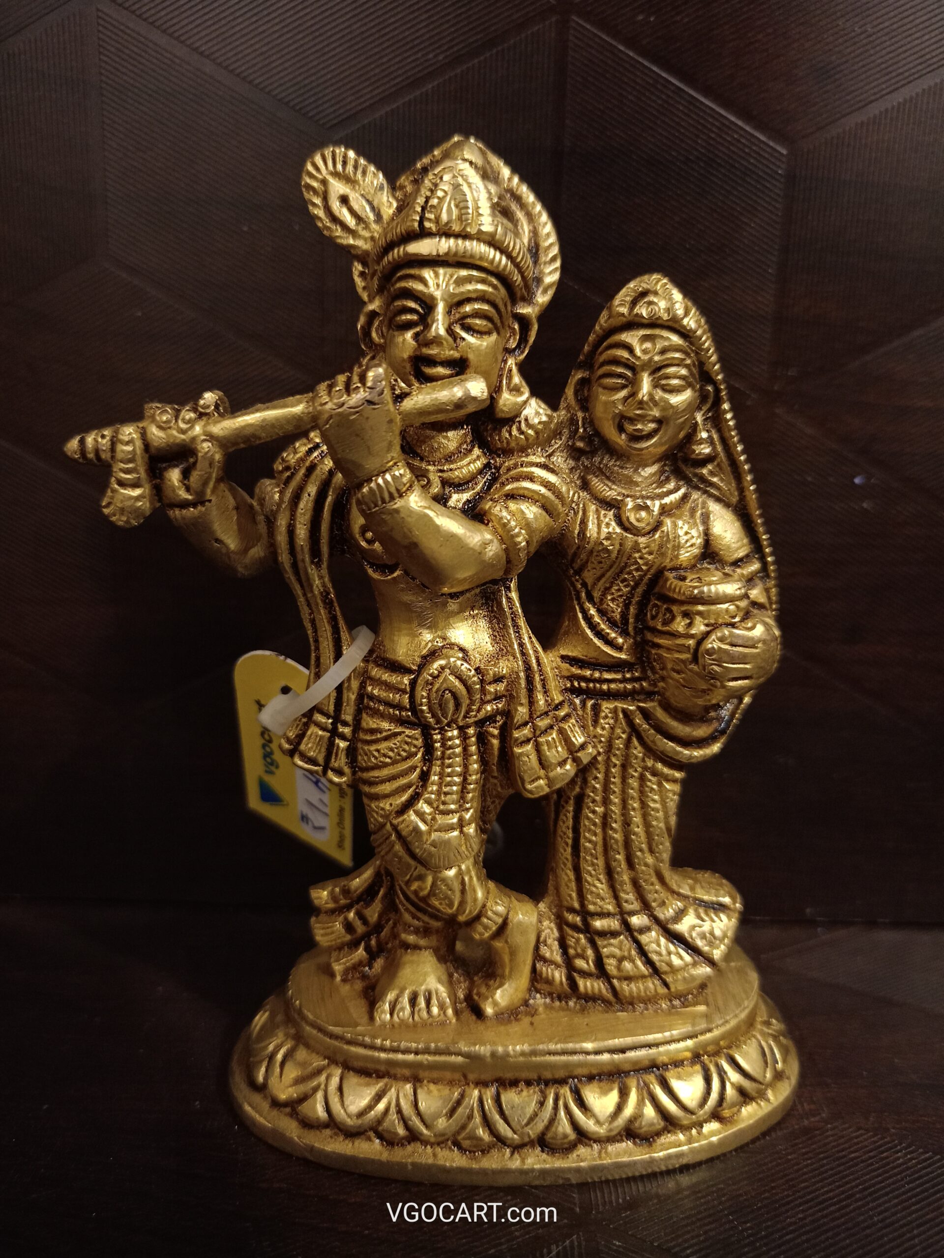 Brass Radha Krishna Idol On Round Base 4.5″ / For Gift