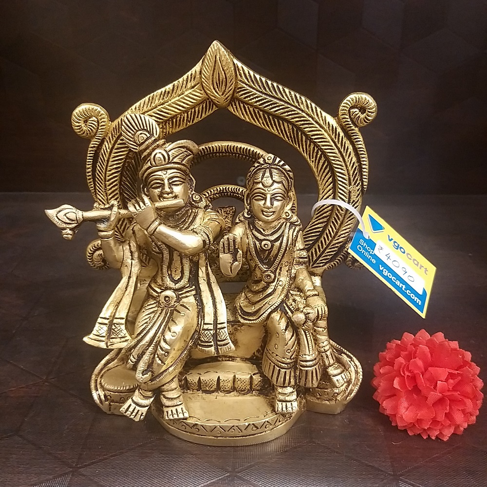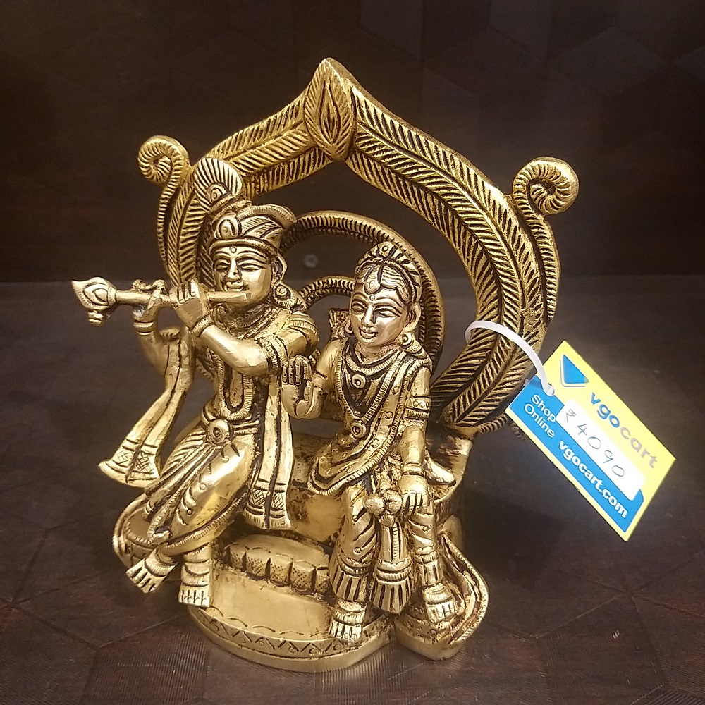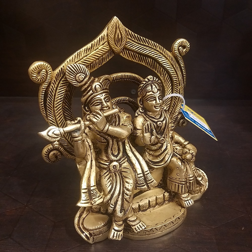 Brass Radha Krishna Sitting on Base Idol- 6″