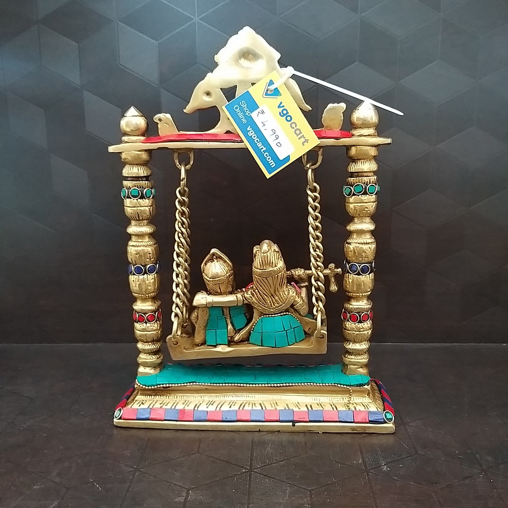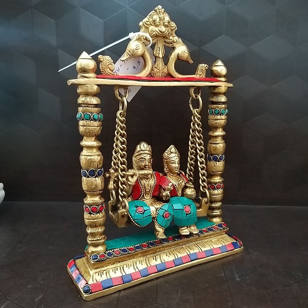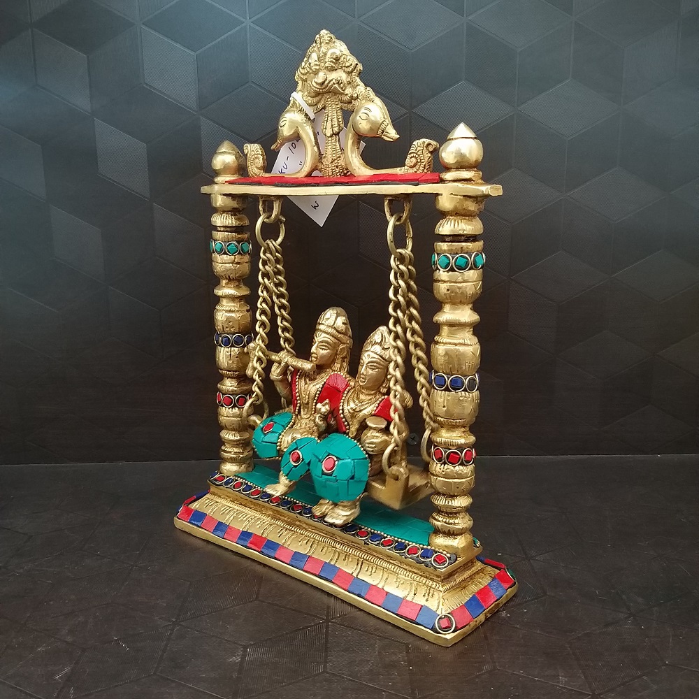 Brass Radha Krishna Swing with Stone Work Idol- 9.5″
