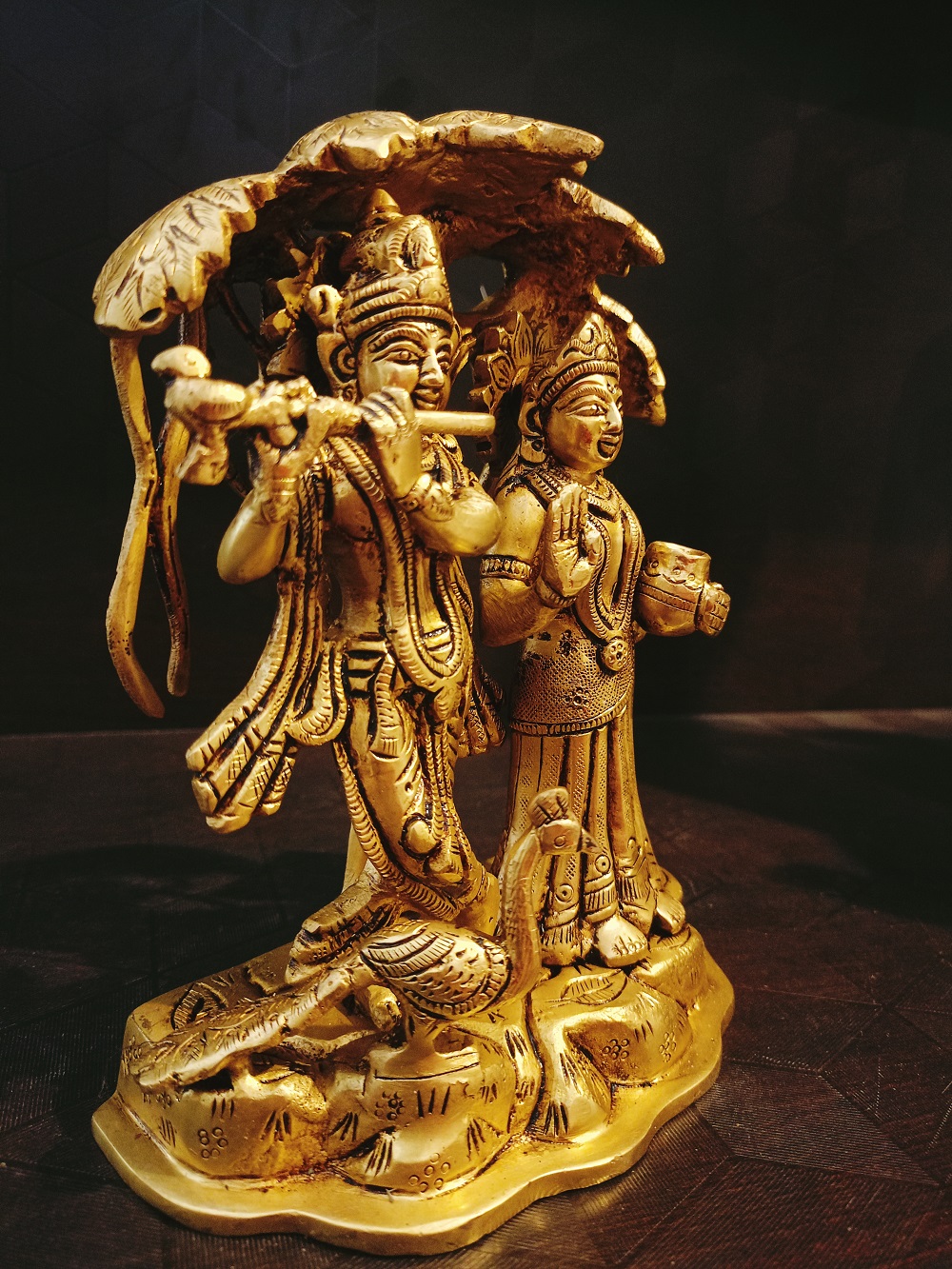 Brass Radha Krishna With Tree Statue | Radha Krishna Brass With Tree Idol 7”