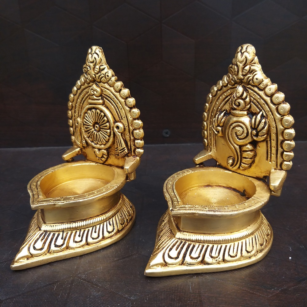 Sangu Chakkaram Diya is also called Perumal Diya, this type of diya is best suitable for Perumal Balaji. When we are doing Perumal, Vishnu, and Venkateshwara pooja we can keep this pair in the pooja room to bring good luck and wealth.