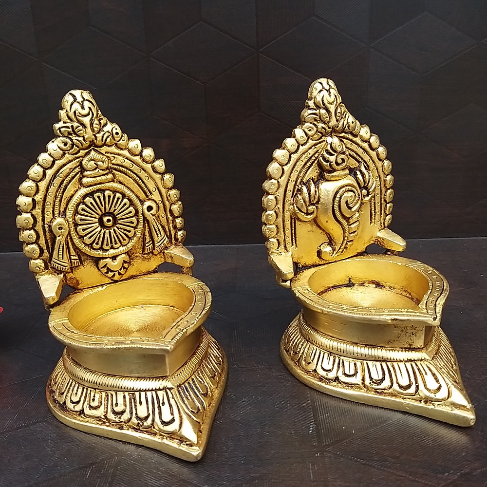 Brass Sangu Chakkara Diya Pair- 4.5″