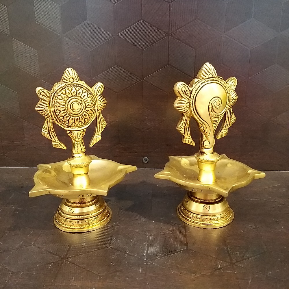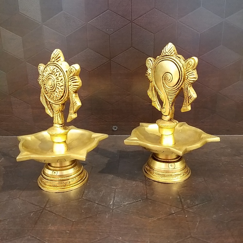 Brass Sangu Chakkra Diya Pair Idol- 6.5″