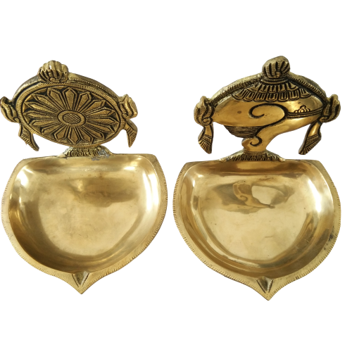 In this brass Sangu chakra Diya, the brass Sangu Diya represents the creation of the universe, and the brass chakra Diya represents the time that creates changes and a transformation cycle. Hence this brass Sangu chakra Diya creates divine vibes that symbolize the meaning of life by the way of lighting it.