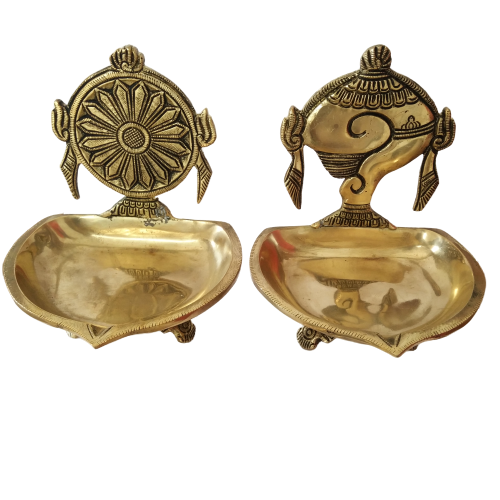 This Brass Sangu Chakra Diya is devoted to Lord Vishnu and suitable for lighting lamps by ardent devotees of Lord Vishnu or any other Vaishnav functions. This Brass Diya of Sangu and chakra is depicted with the handcrafted clear exact structure of Sangu and chakra designs.