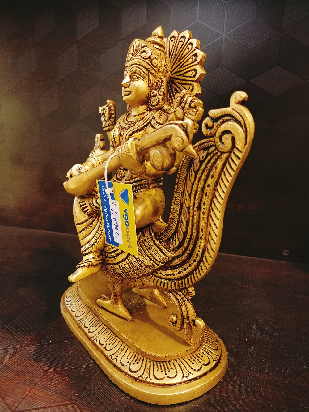 Brass Saraswathi Sitting On Annam Idol Usage: